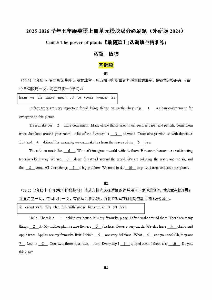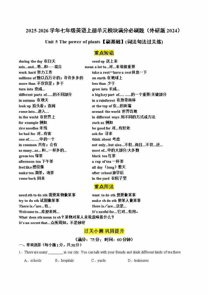 Unit 5(刷基础)(词法句法过关练)(原卷版)(外研版2024)