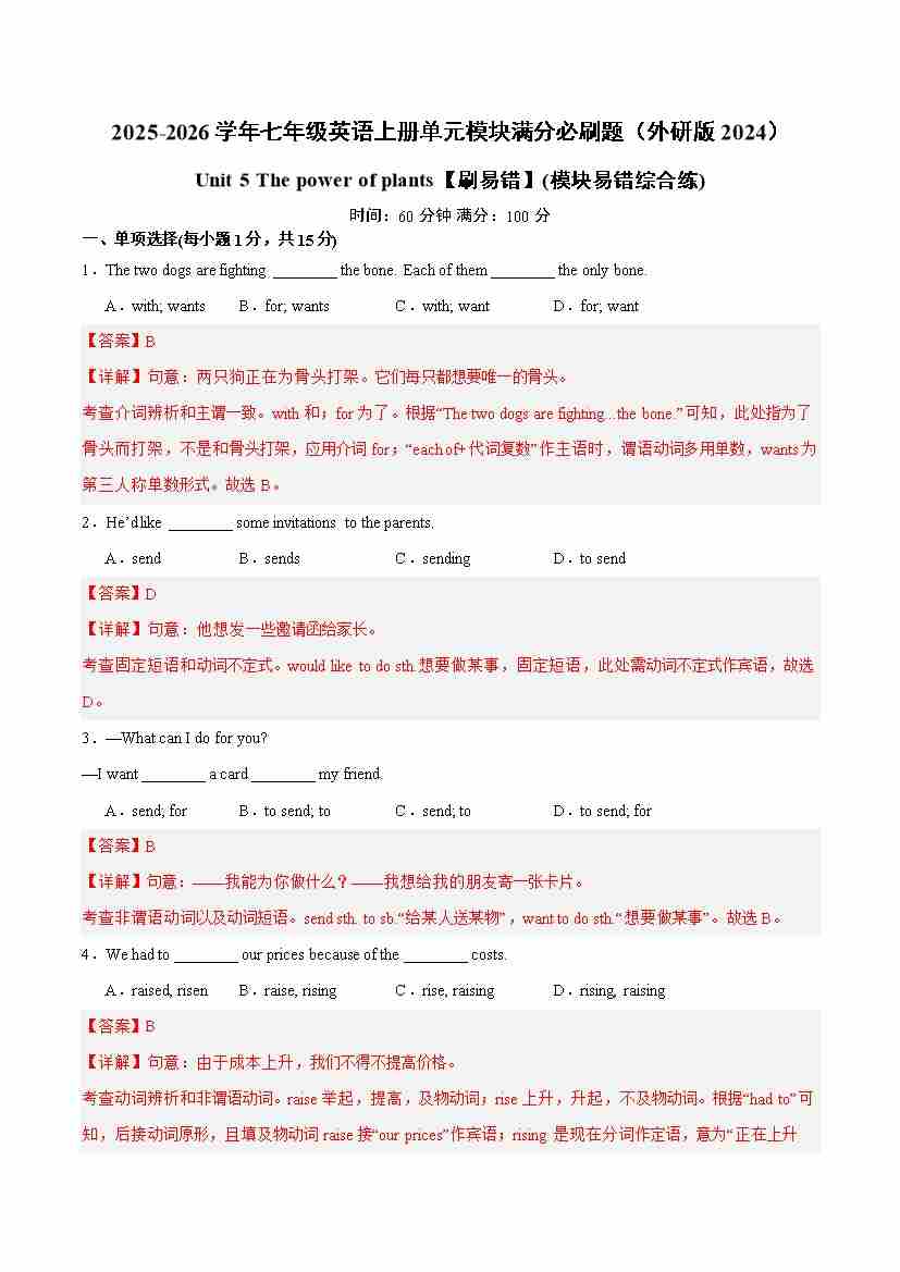 Unit 5(刷易错)(模块易错综合练)(解析版)(外研版2024)