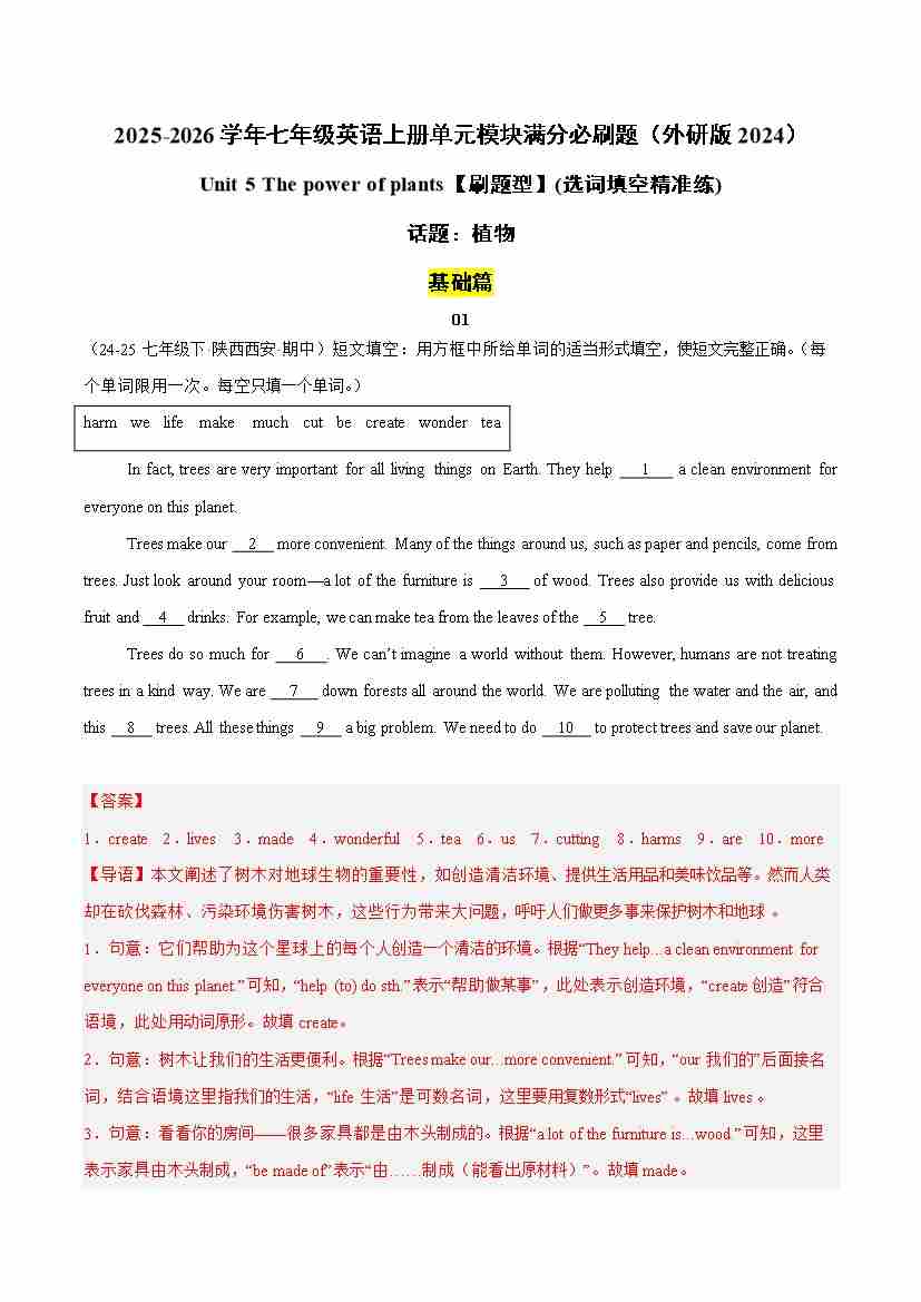 Unit 5(刷题型)(选词填空精准练)(解析版)(外研版2024)