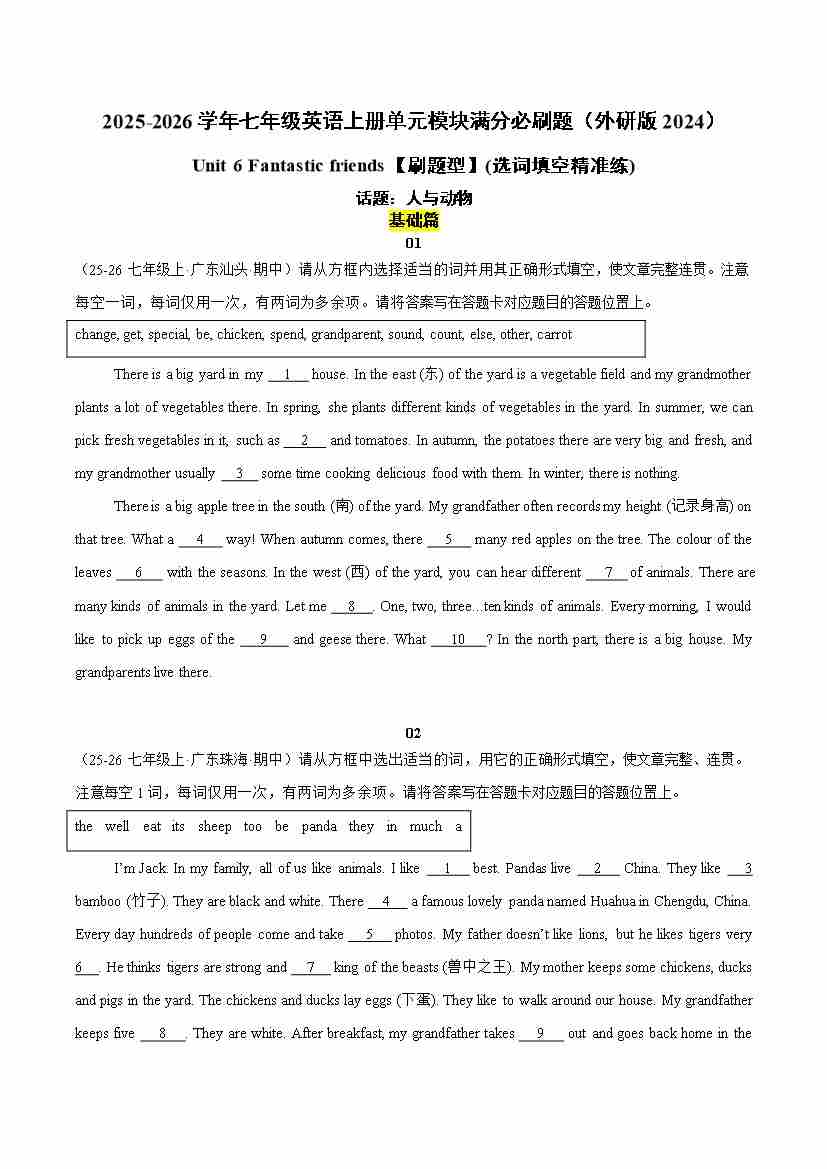Unit 6(刷题型)(选词填空精准练)(原卷版)(外研版2024)