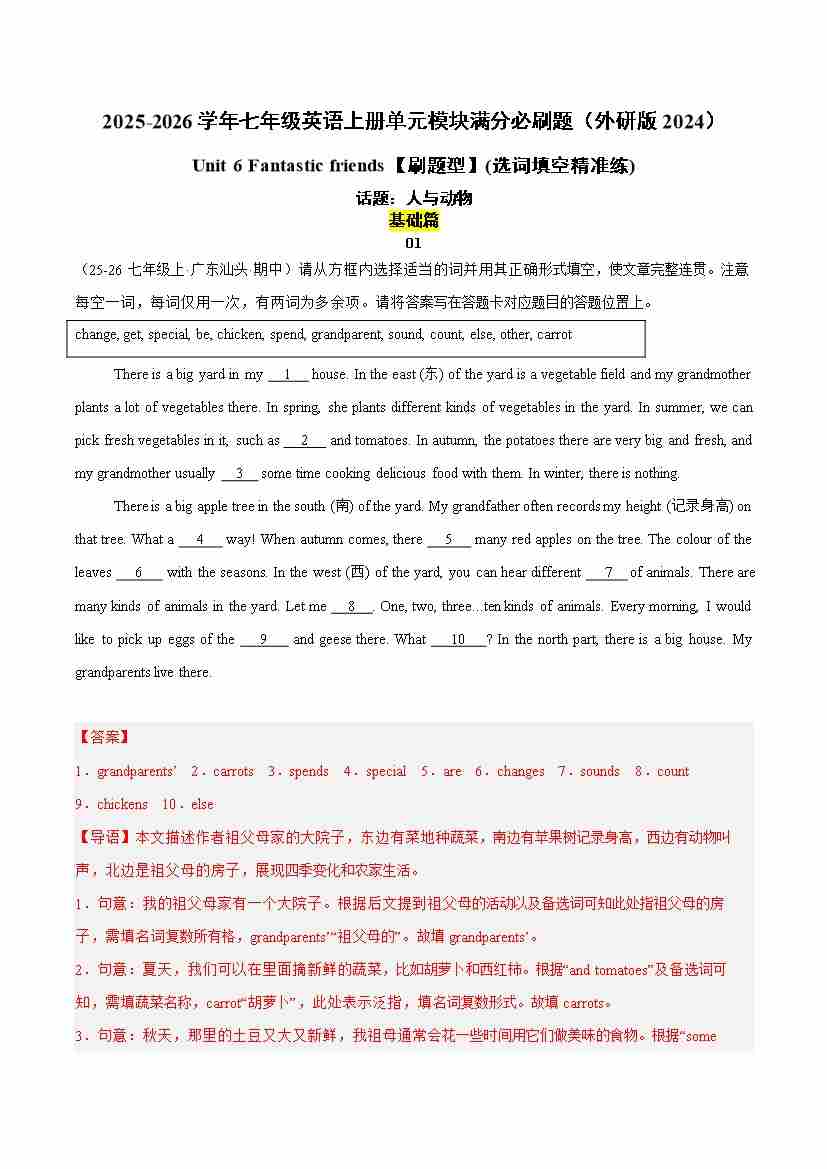 Unit 6(刷题型)(选词填空精准练)(解析版)(外研版2024)