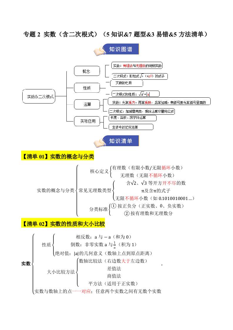 专题02 实数(含二次根式)(5知识&7题型&3易错&5方法清单)(期末复习知识清单)(教师版)
