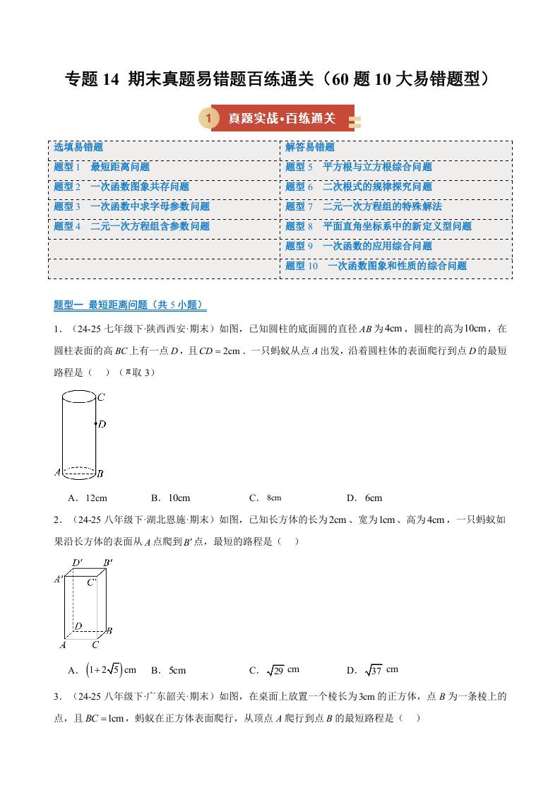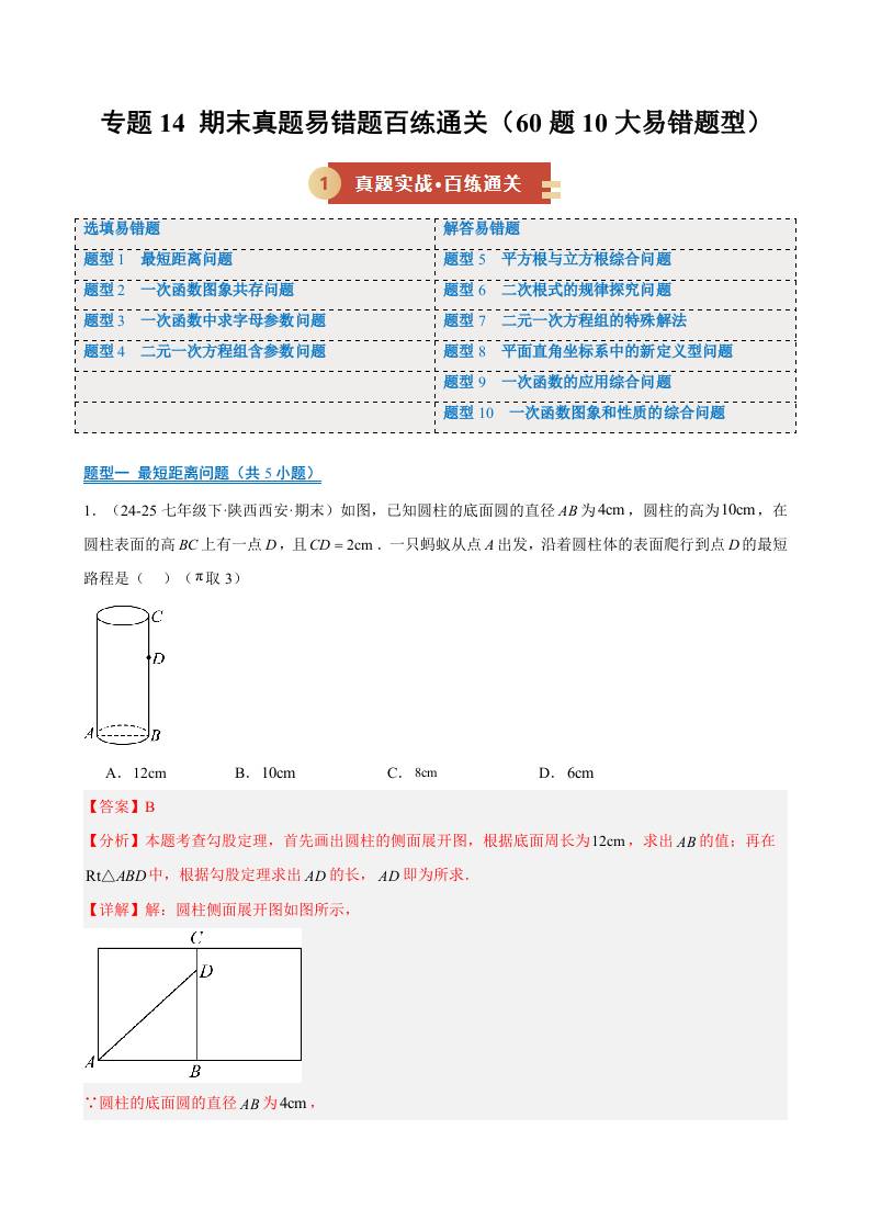 专题14 期末真题易错题百练通关(期末复习专项训练)(原卷版)