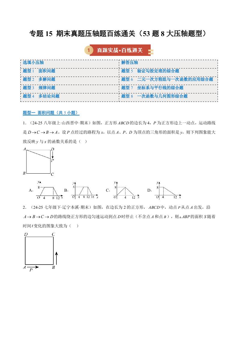 专题15 期末真题压轴题百练通关(期末复习专项训练)(原卷版)