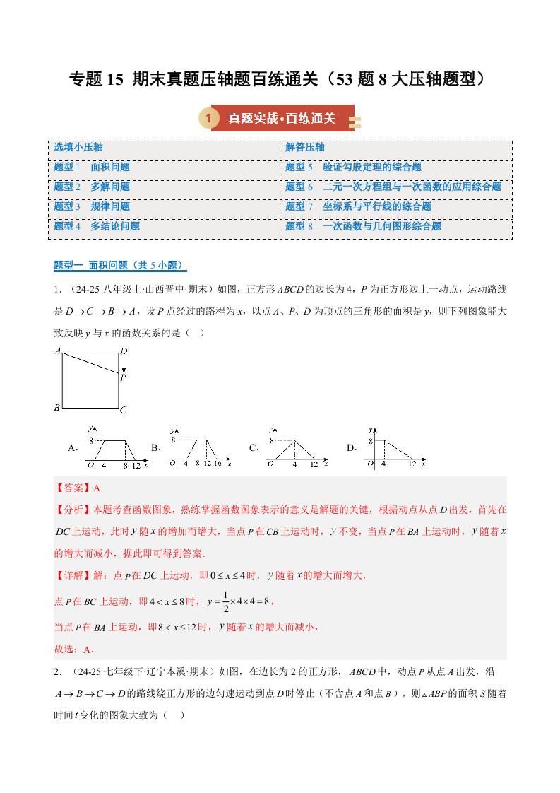 专题15 期末真题压轴题百练通关(期末复习专项训练)(解析版)