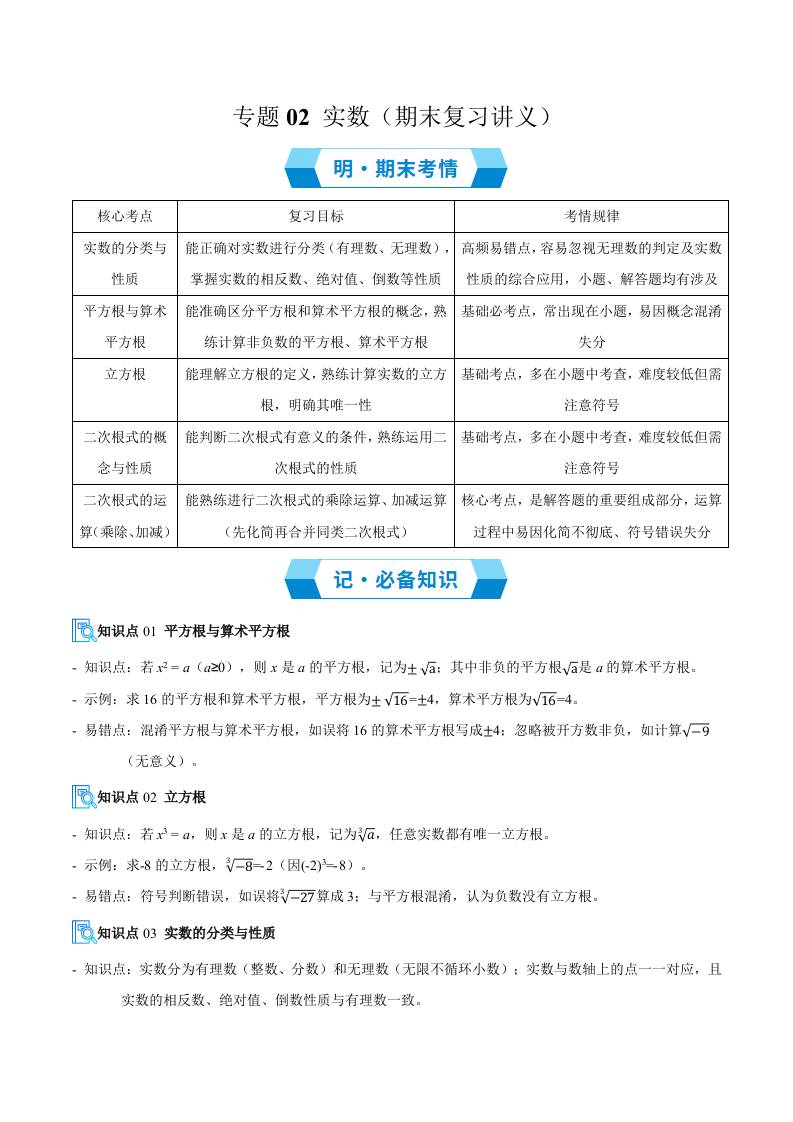 专题02 实数(必备知识10大题型分层训练)(期末复习讲义)(学生版)