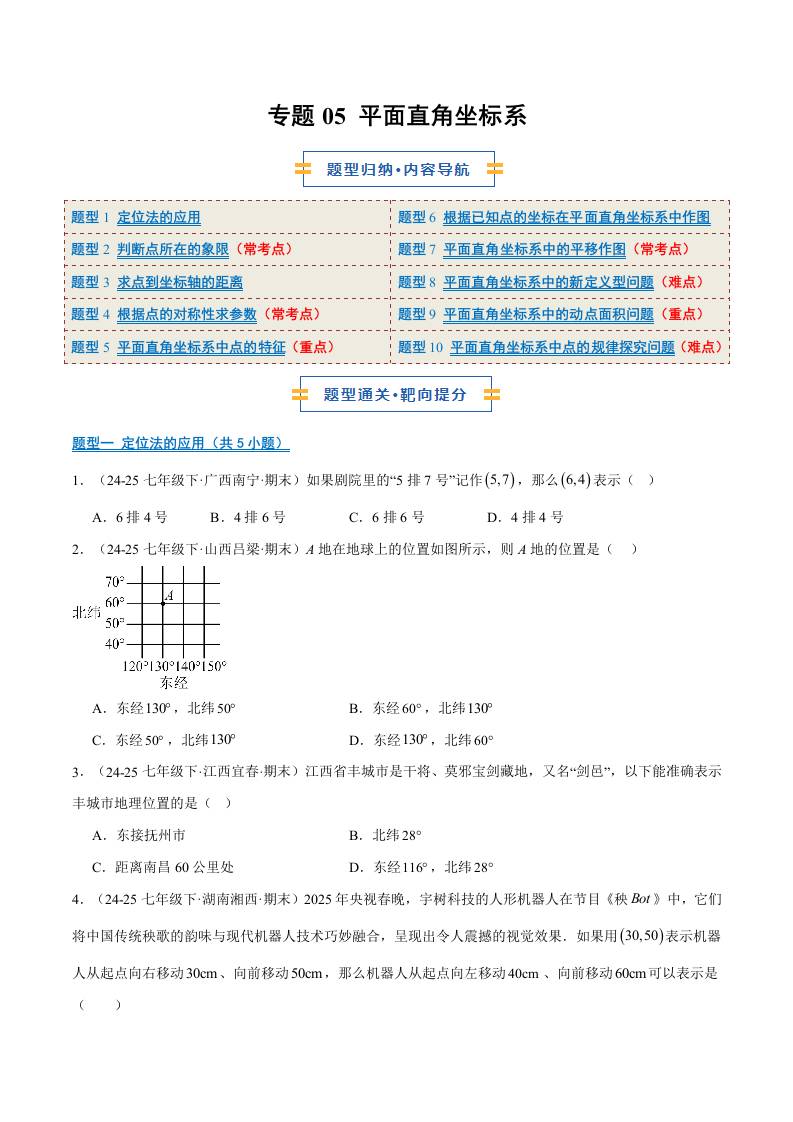 专题05 平面直角坐标系(10大题型)(期末复习专项训练)(原卷版)