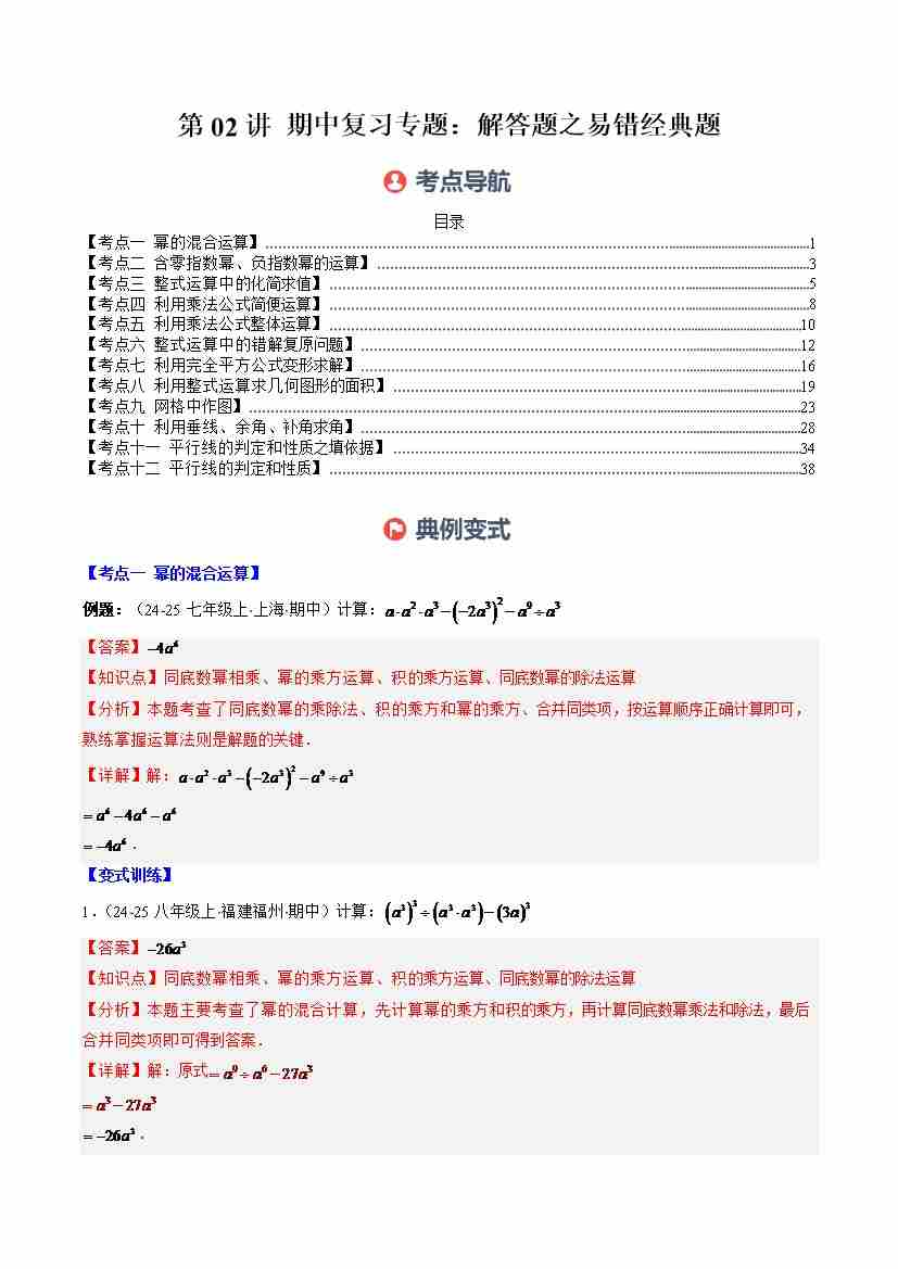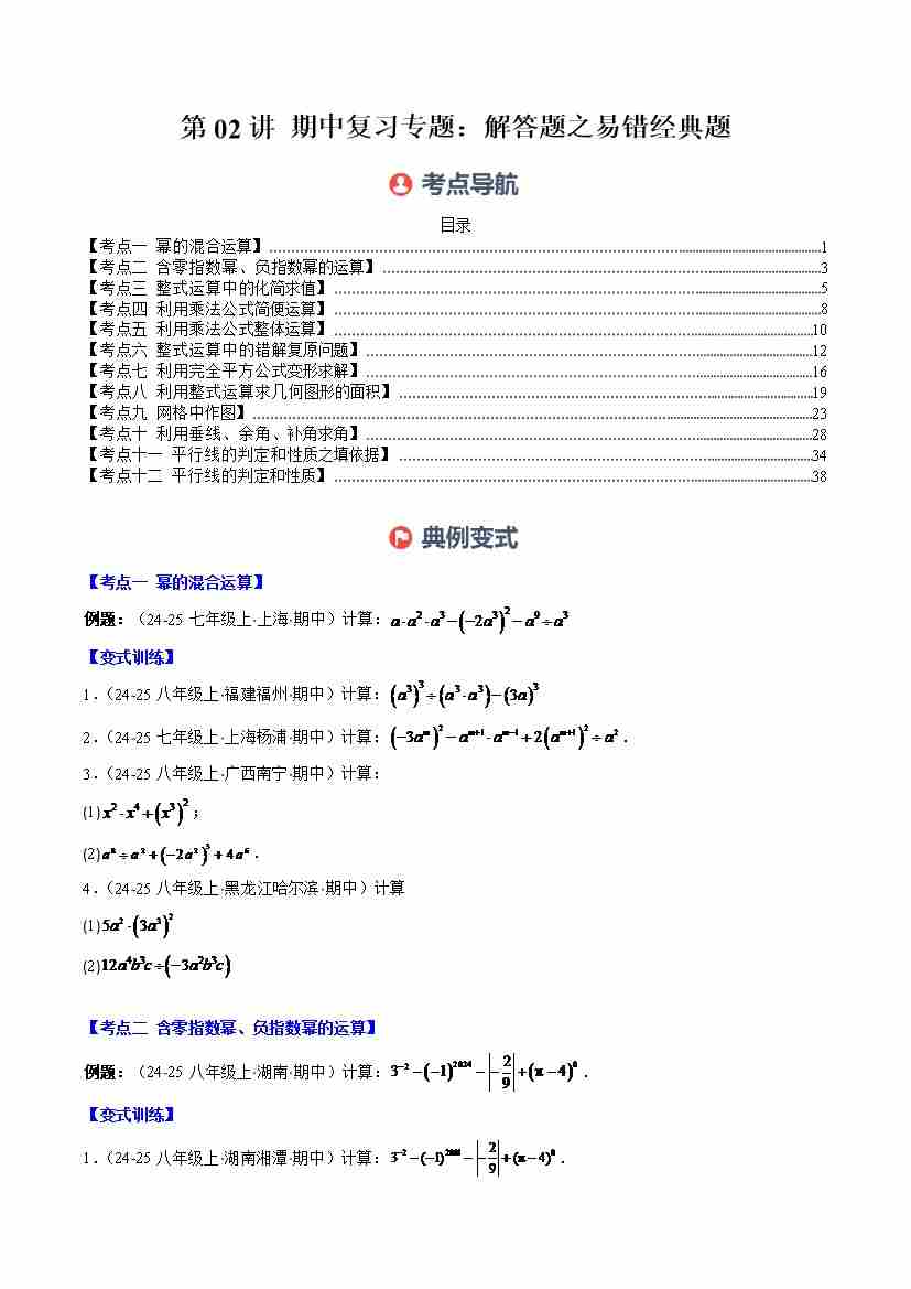 第02讲 期中复习专题:解答题之易错经典题(12大常考题型)(学生版)