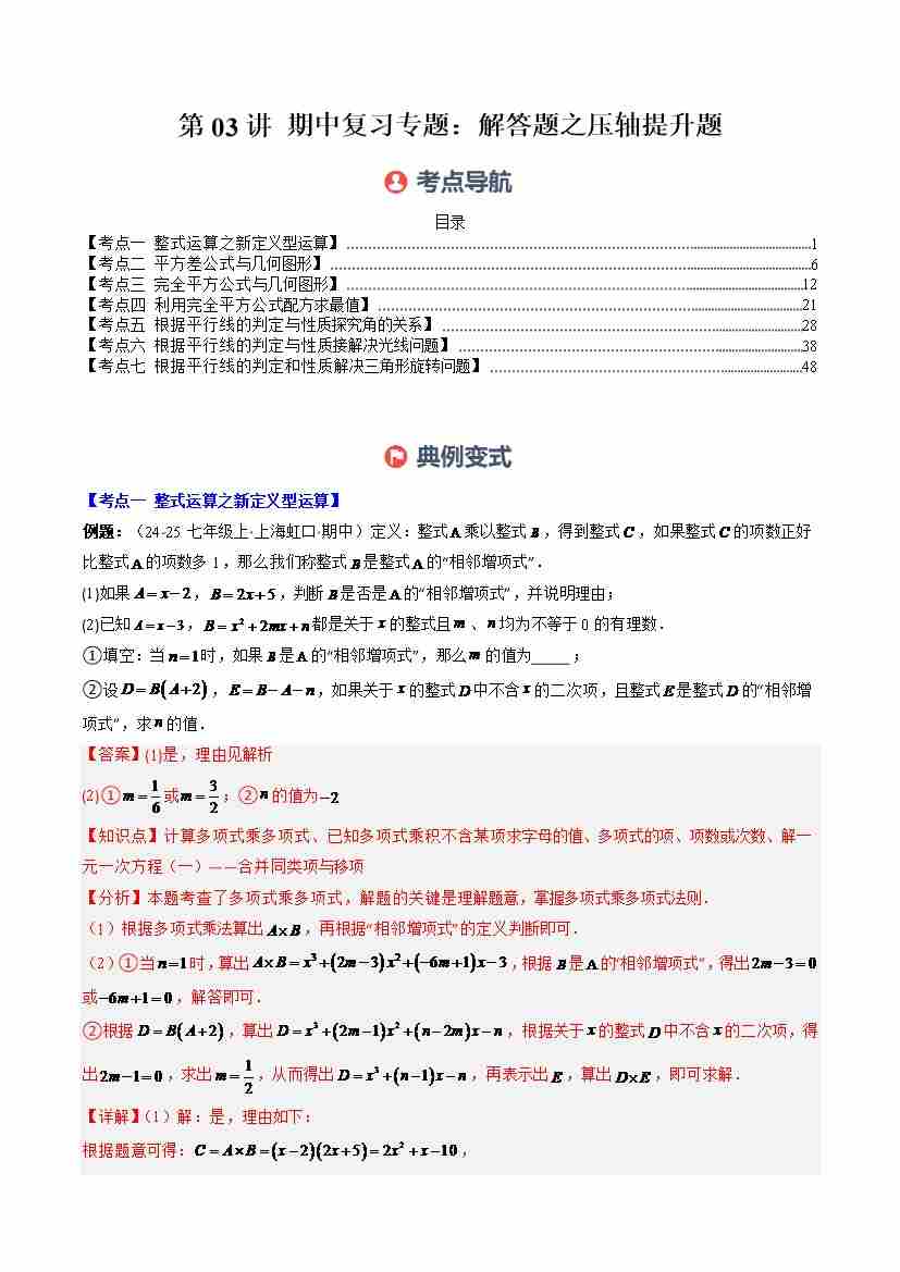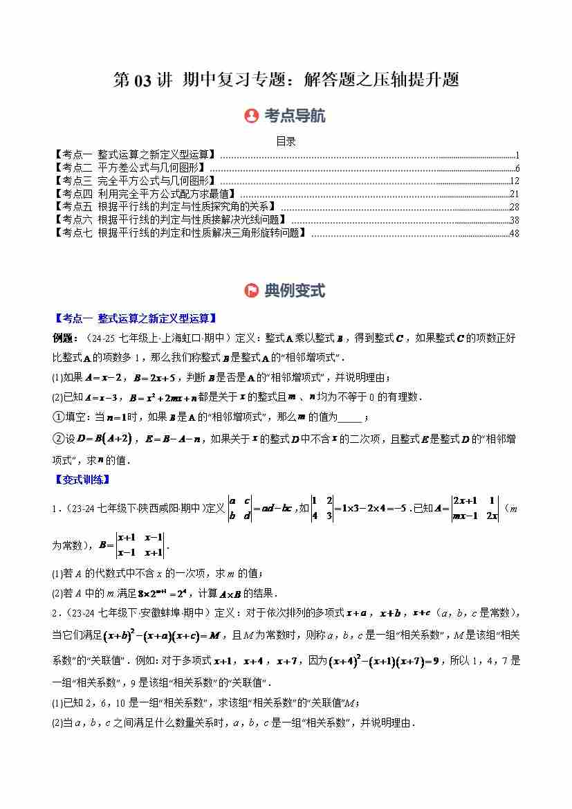 第03讲 期中复习专题:解答题之压轴提升题(7大常考题型)(学生版)