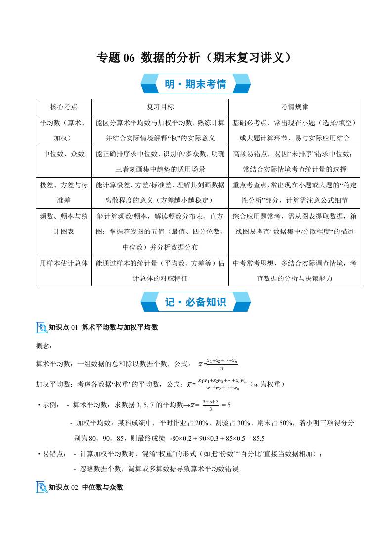 专题06 数据的分析(必备知识6大题型分层训练)(期末复习讲义)(学生版)