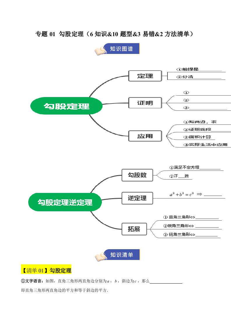 专题01 勾股定理(期末复习知识清单)(学生版)