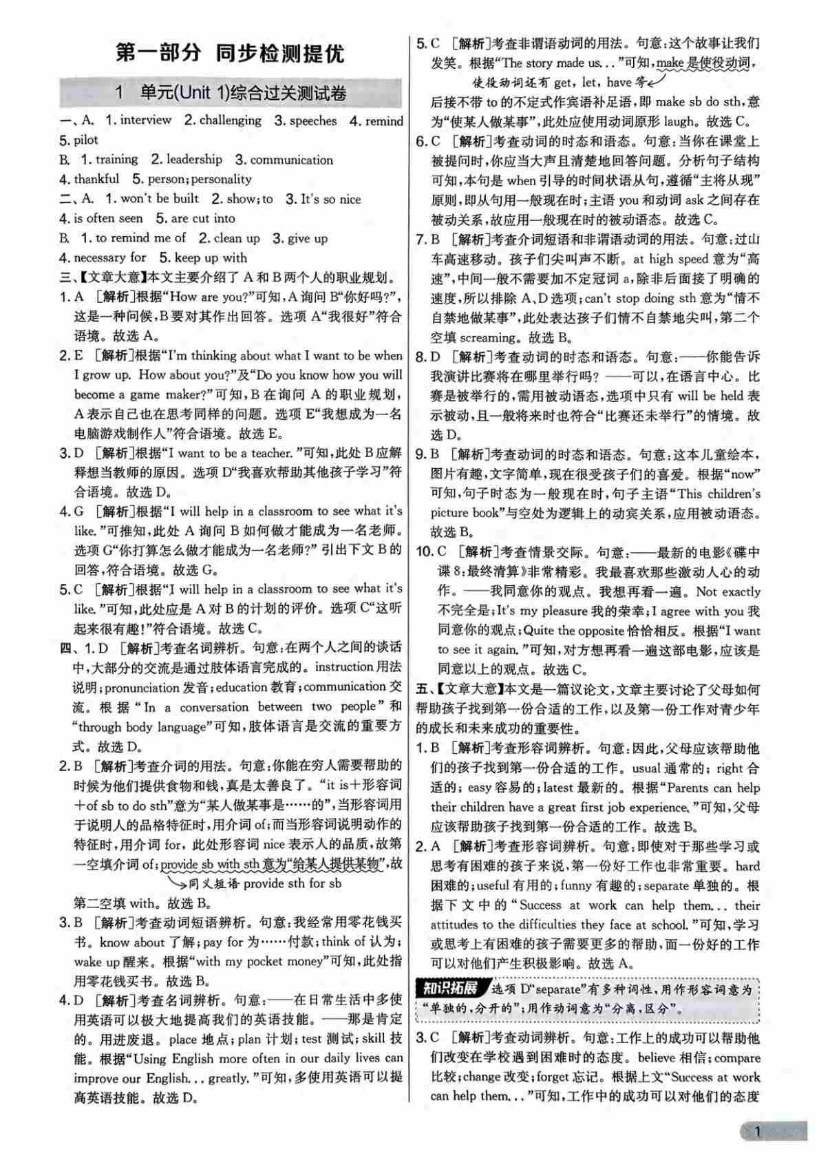 八下英语外研版一遍过答案解析