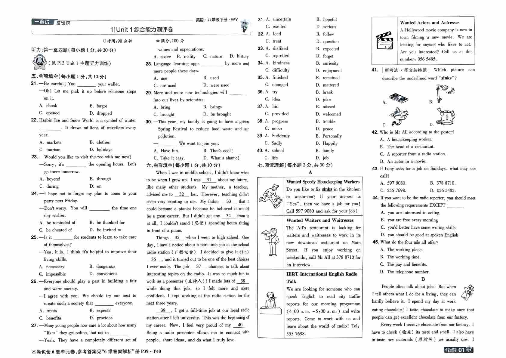 八下英语外研版一遍过综合能力测评卷