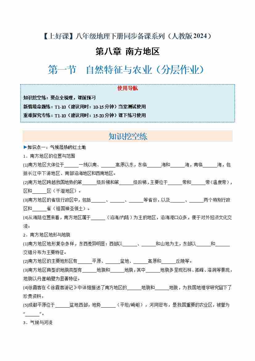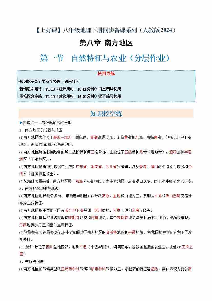 8.1 自然特征与农业(分层作业)(原卷版)