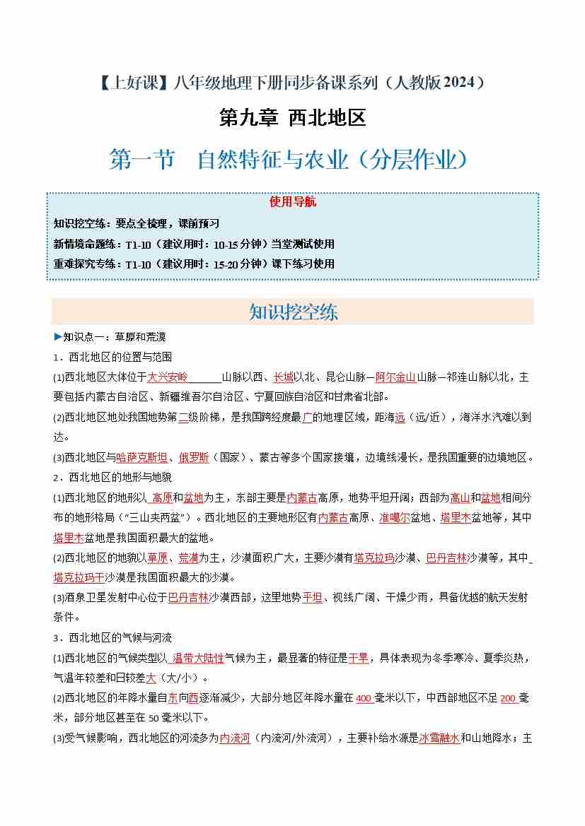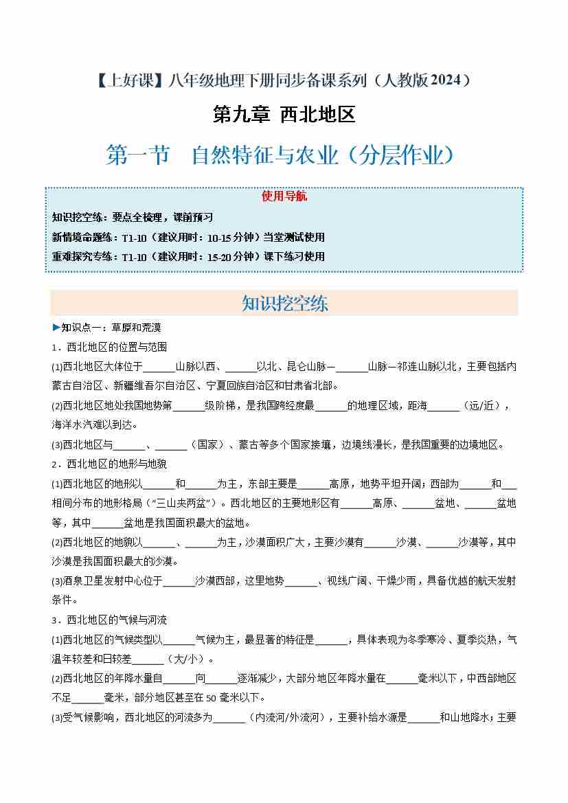 9.1 自然特征与农业(分层作业)(原卷版)