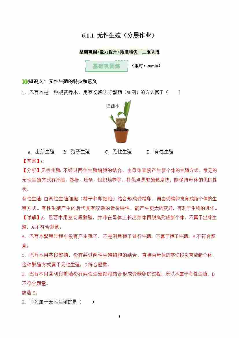 6.1.1 无性生殖(分层作业)(解析版)