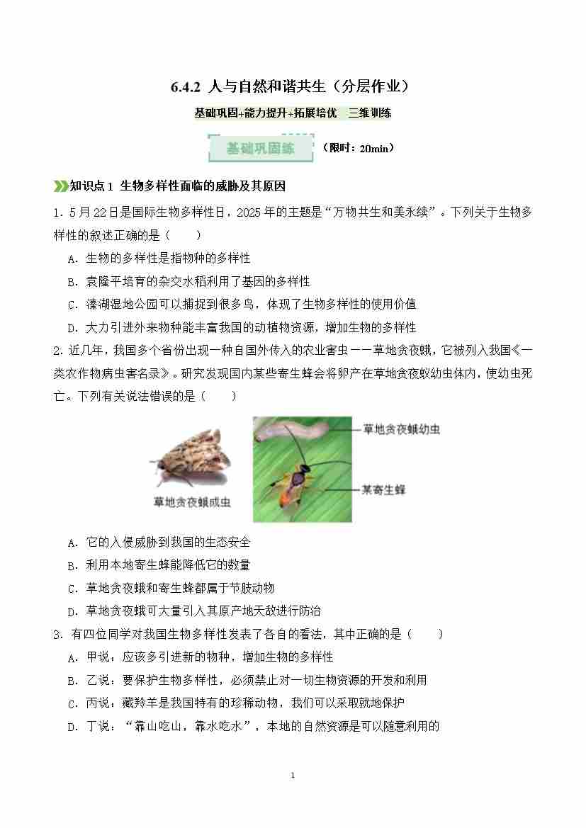 6.4.2 人与自然和谐共生 (分层作业)(原卷版)