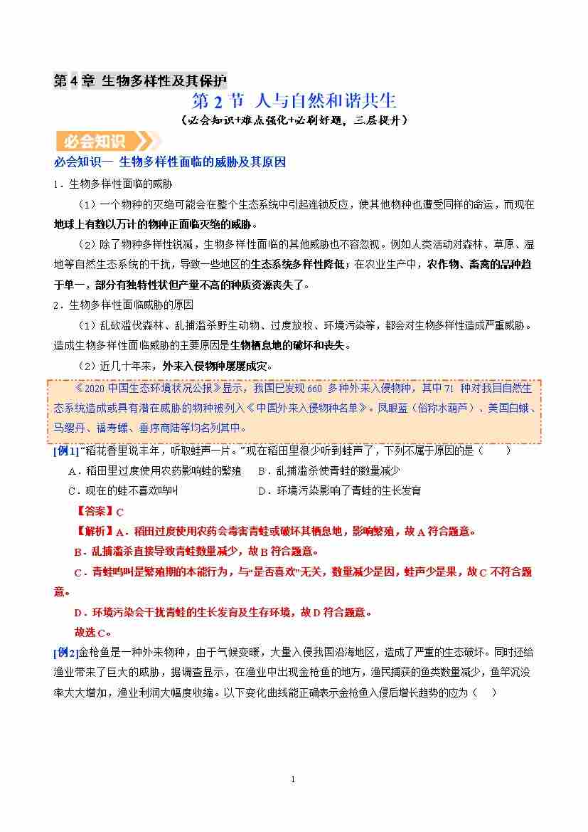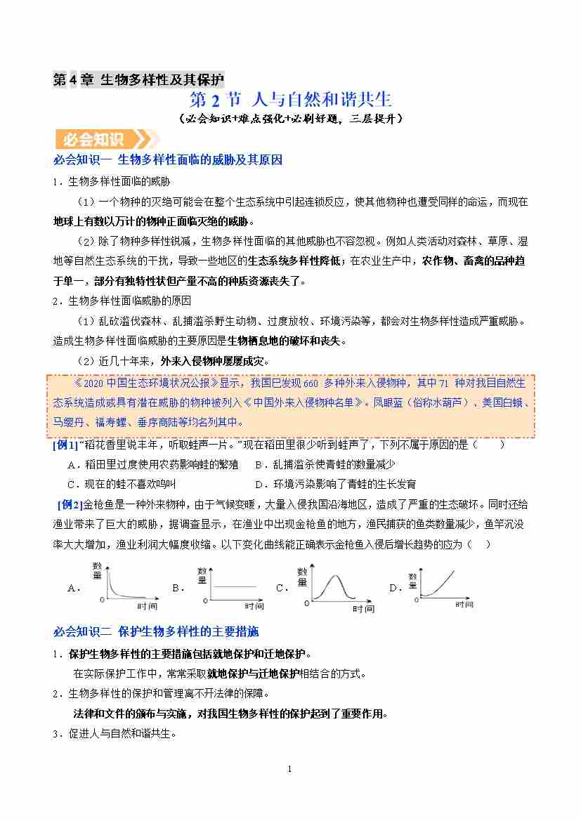 6.4.2 人与自然和谐共生(提升讲义)生物新教材人教版八年级下册(原卷版)