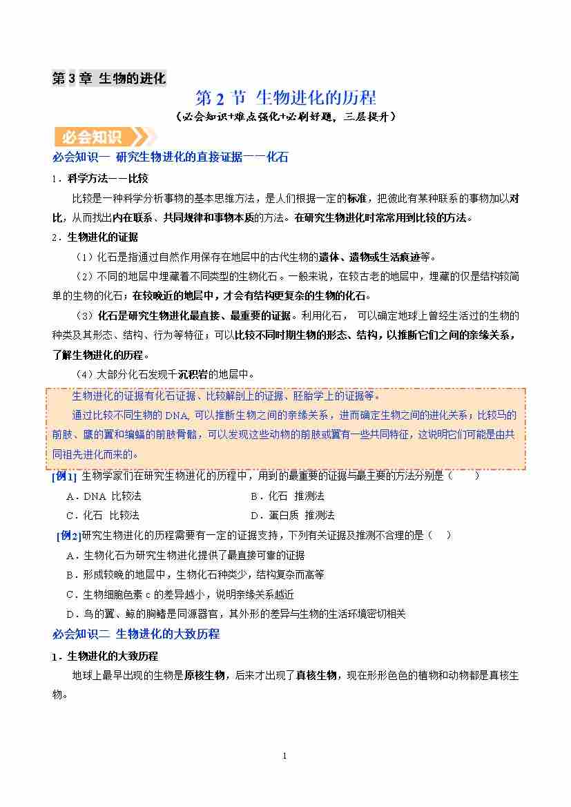 6.3.2 生物进化的历程(提升讲义)生物新教材人教版八年级下册(原卷版)