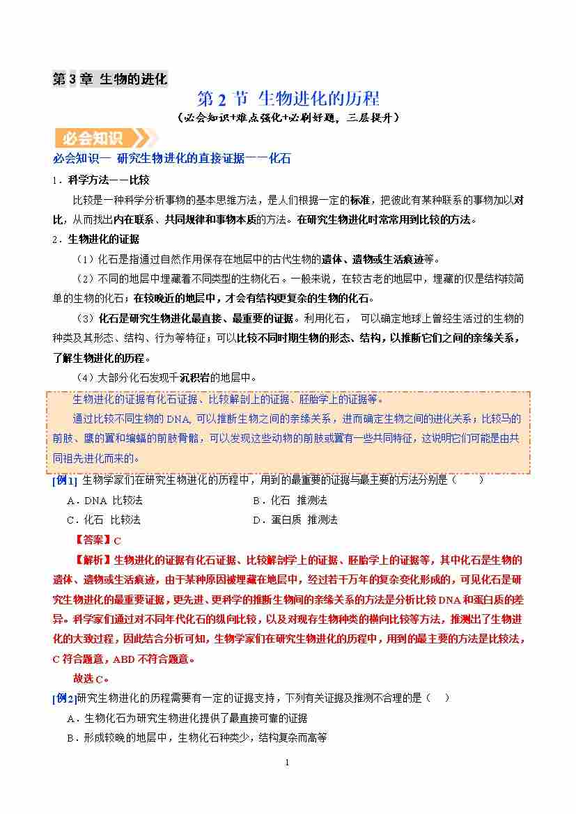 6.3.2 生物进化的历程(提升讲义)生物新教材人教版八年级下册(解析版)