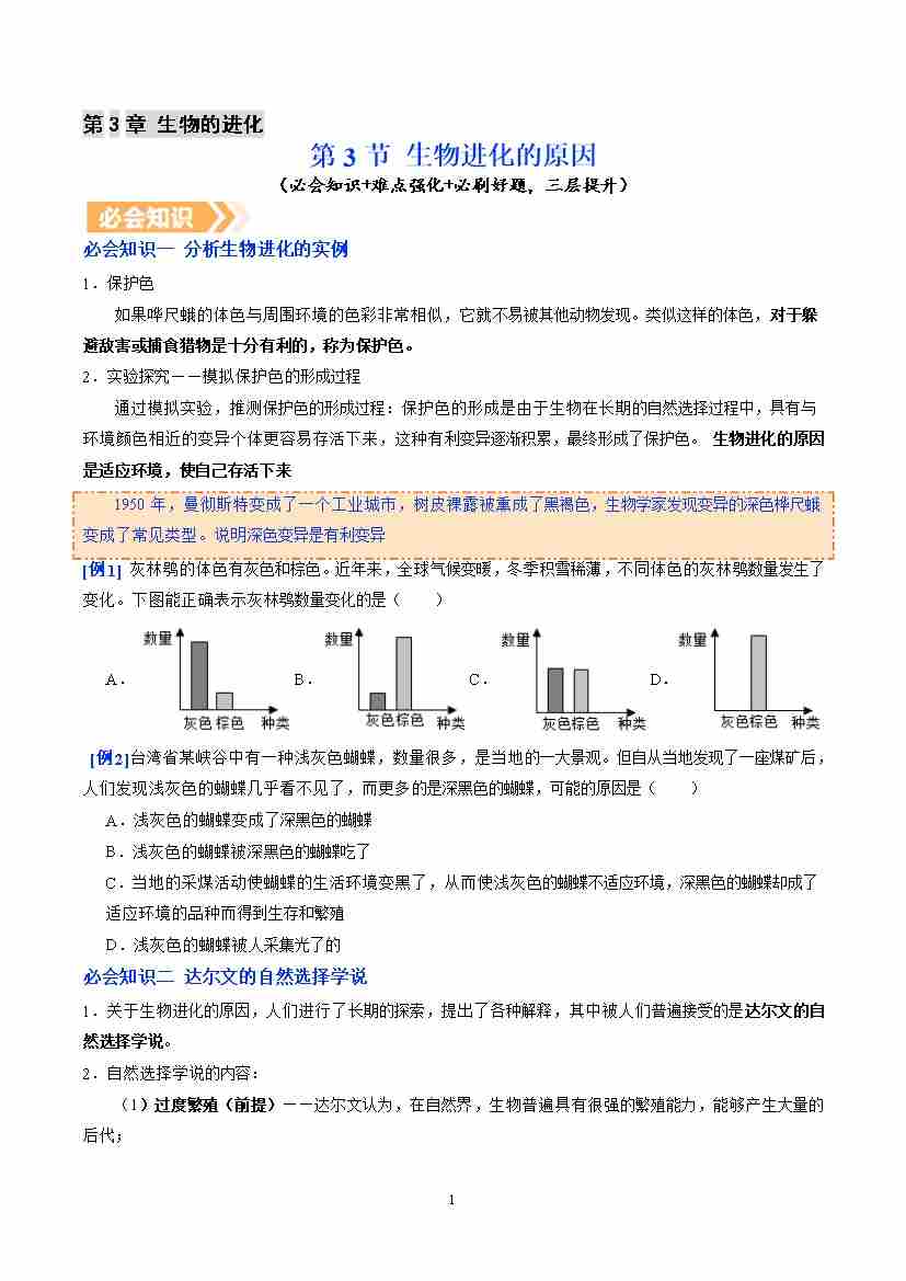 6.3.3 生物进化的原因(提升讲义)生物新教材人教版八年级下册(原卷版)