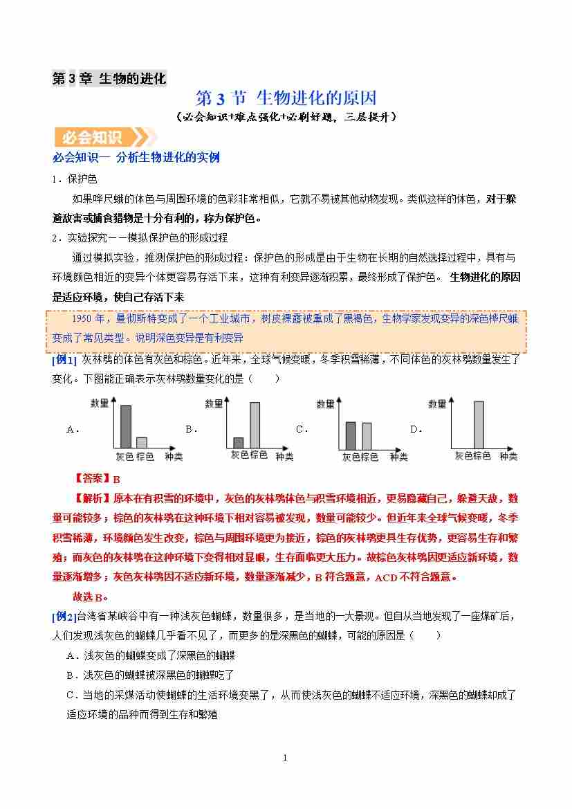 6.3.3 生物进化的原因(提升讲义)生物新教材人教版八年级下册(解析版)