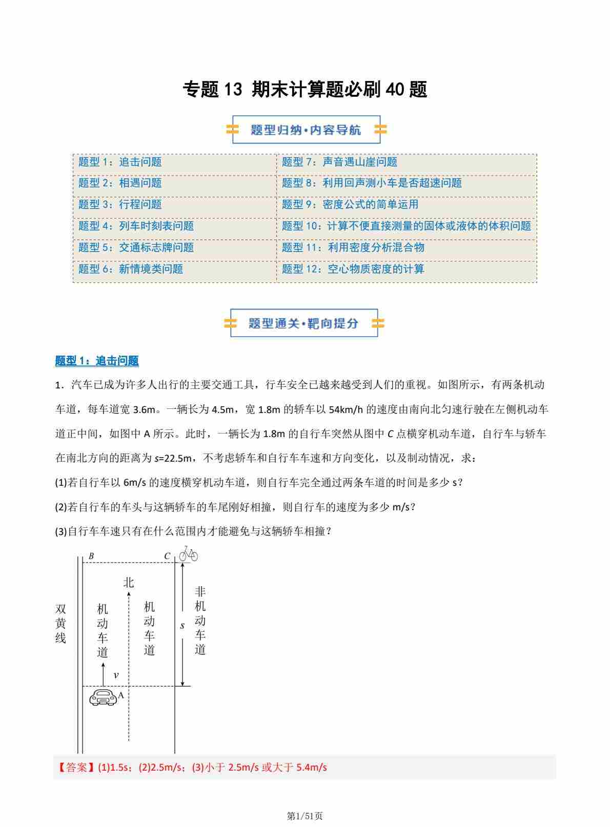 2025八上物理人教版期末计算题必刷(期末专项训练)(解析版)(1)