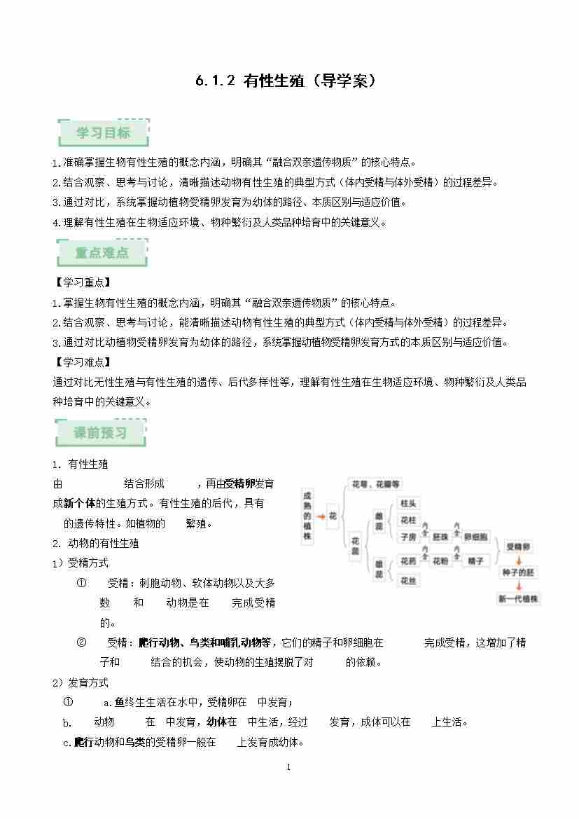 6.1.2 有性生殖(原卷版)(导学案)生物新教材人教版八年级下册