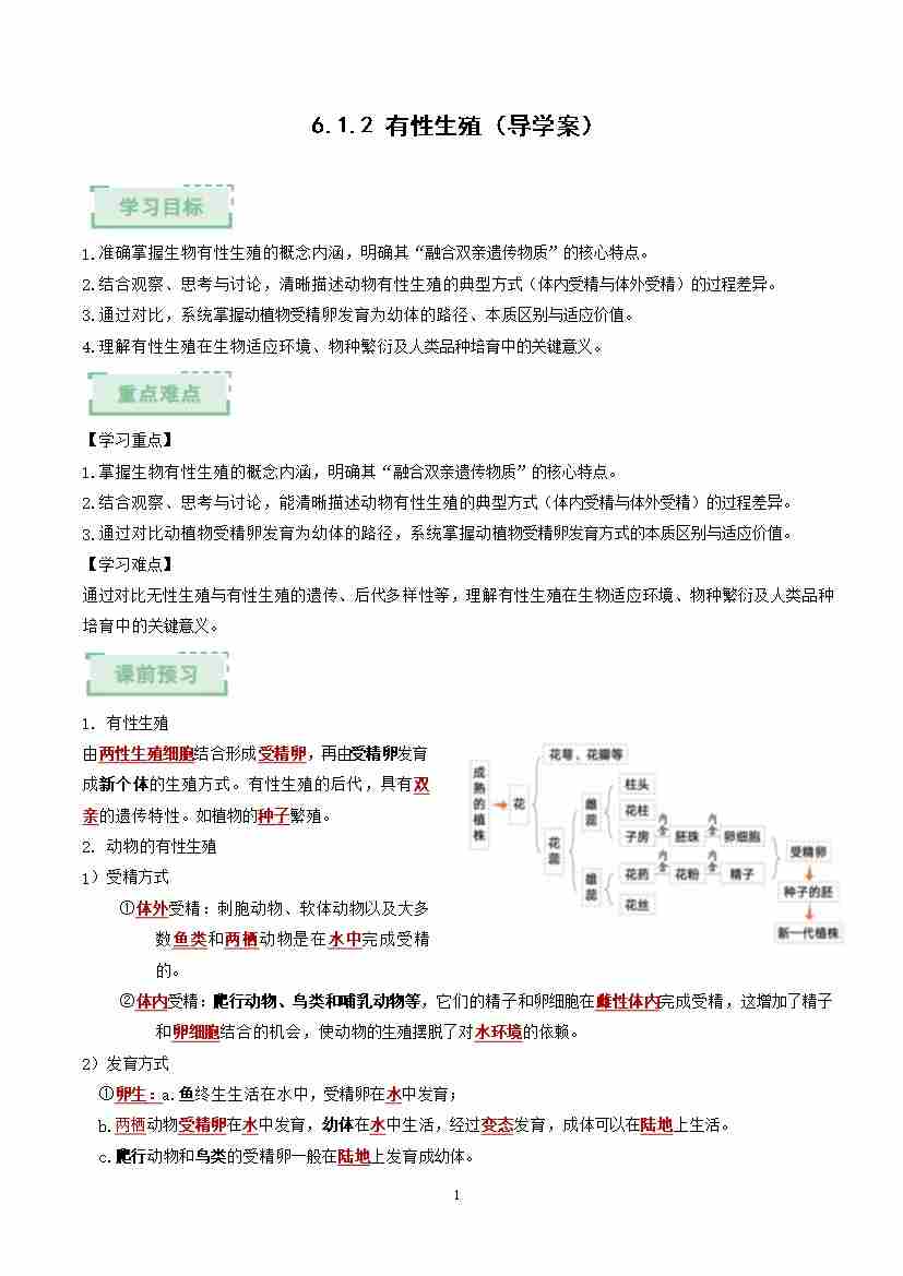 6.1.2 有性生殖(解析版)(导学案)生物新教材人教版八年级下册