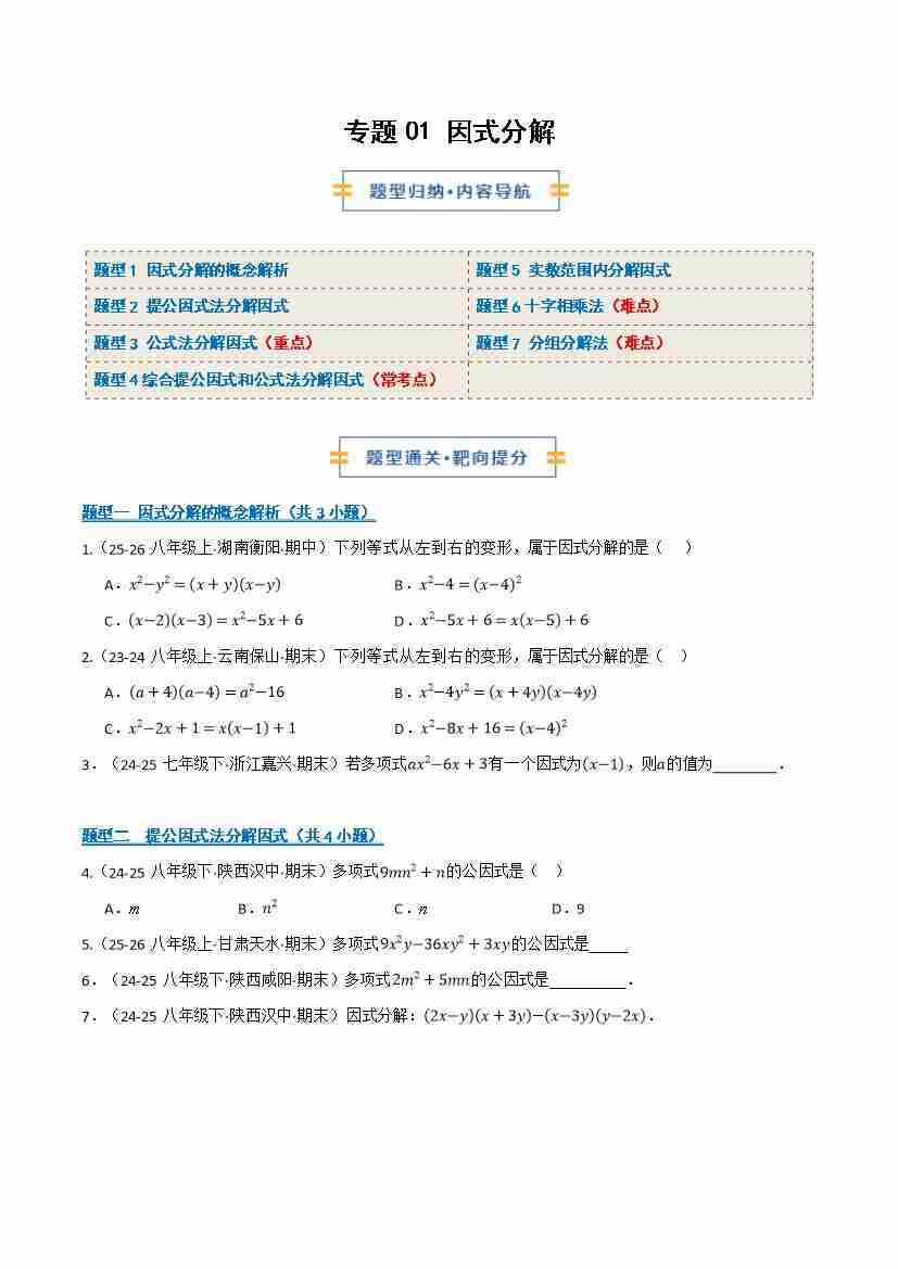 专题01 因式分解(期末复习专项训练)(原卷版)