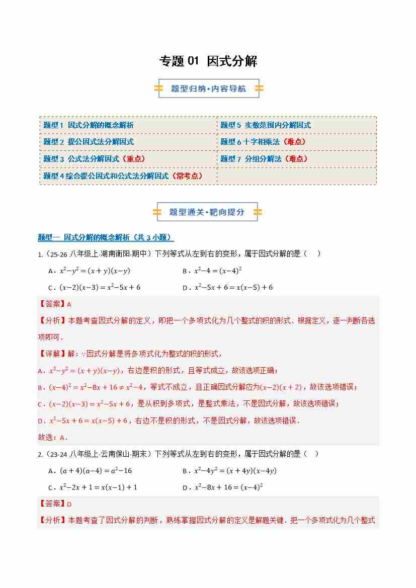 专题01 因式分解(期末复习专项训练)(解析版)