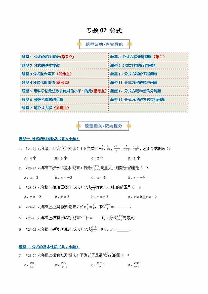 专题02 分式(期末复习专项训练)(原卷版)