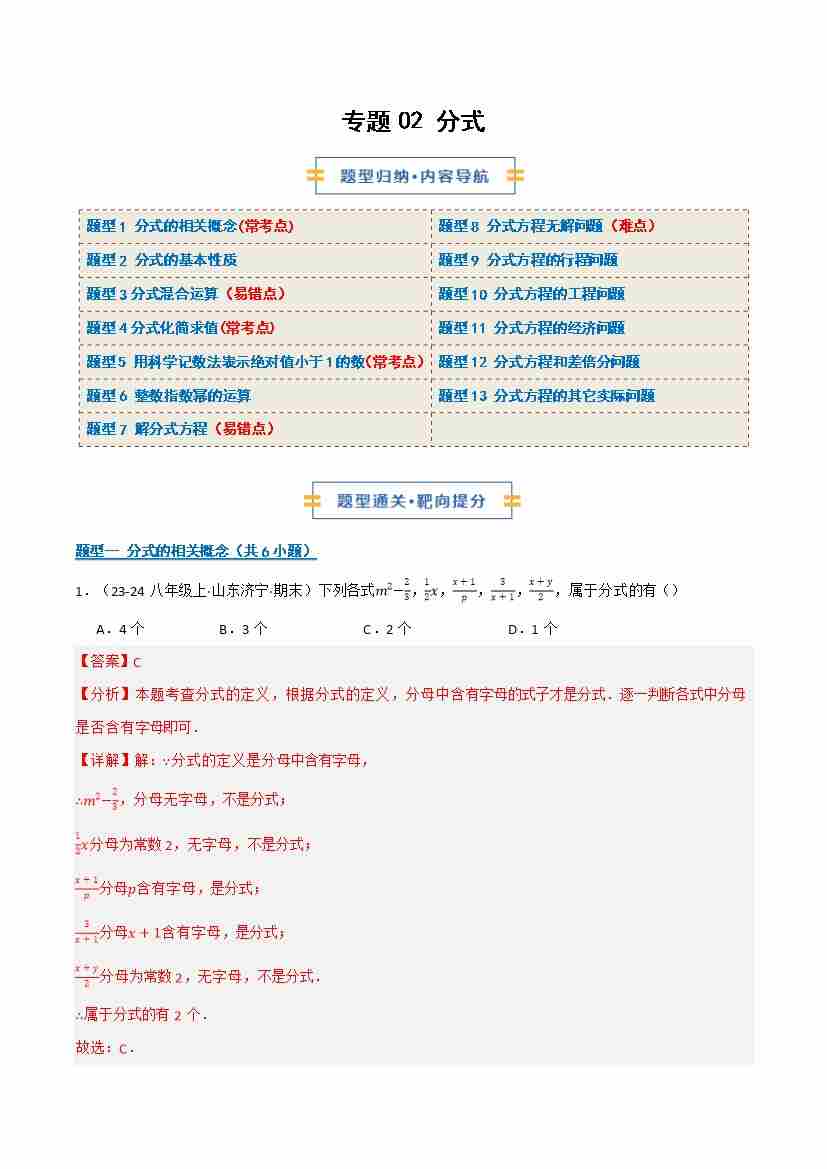 专题02 分式(期末复习讲义)(解析版)