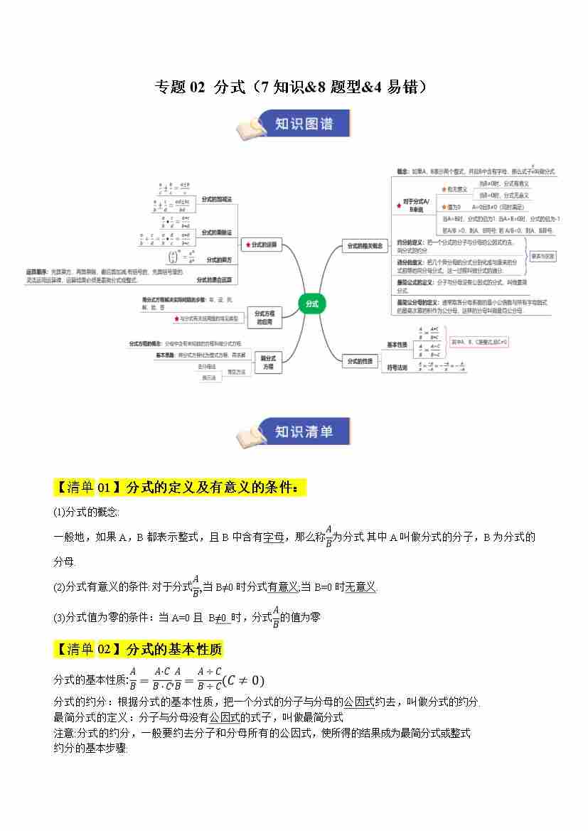专题02 分式(期末复习知识清单)(原卷版)