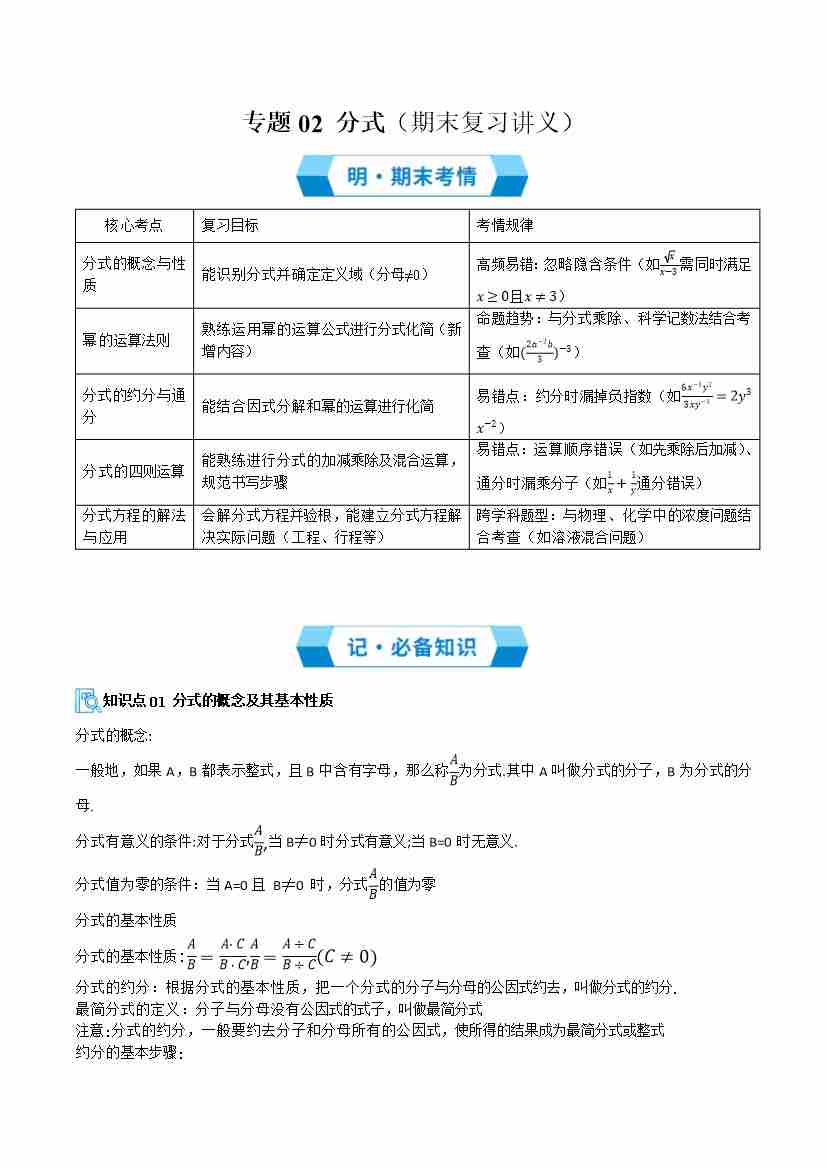专题02 分式(期末复习讲义)(原卷版)