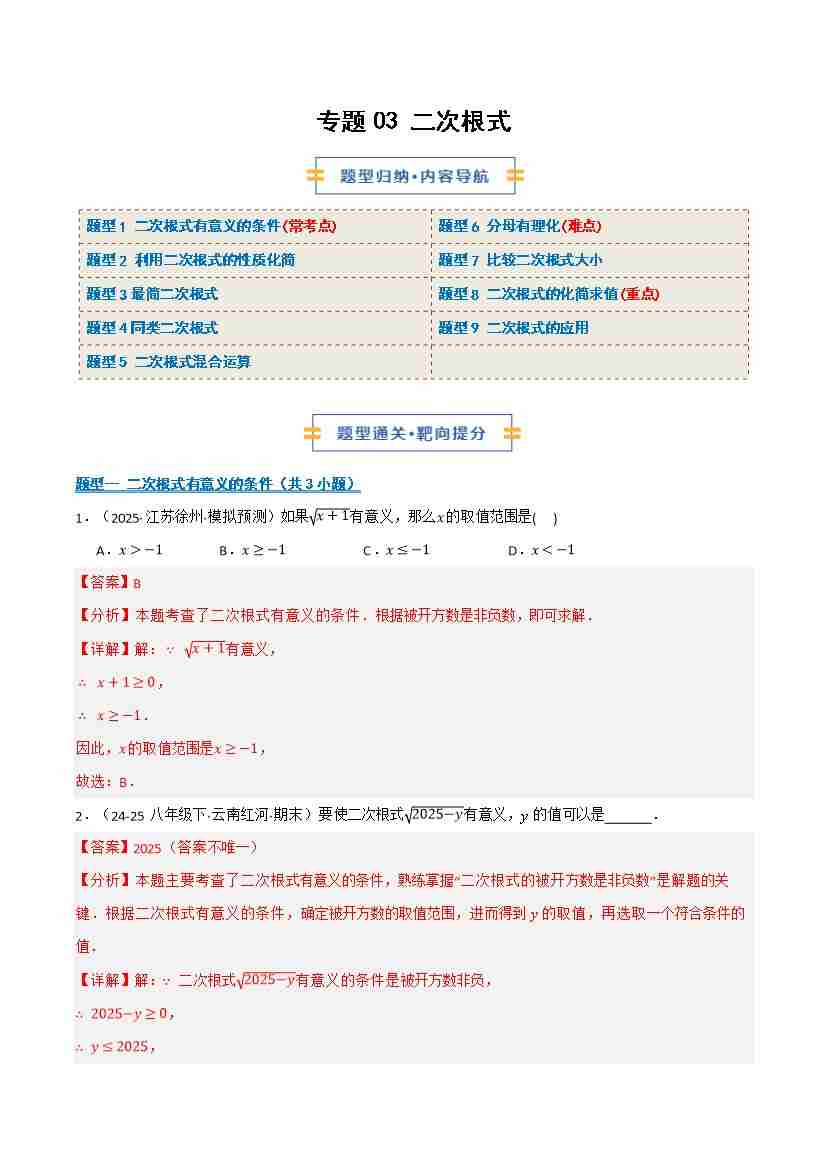 专题03 二次根式(期末复习专项训练)(解析版)
