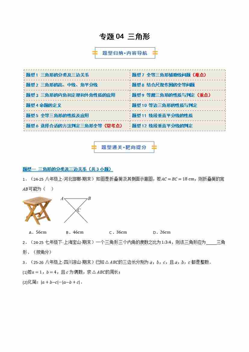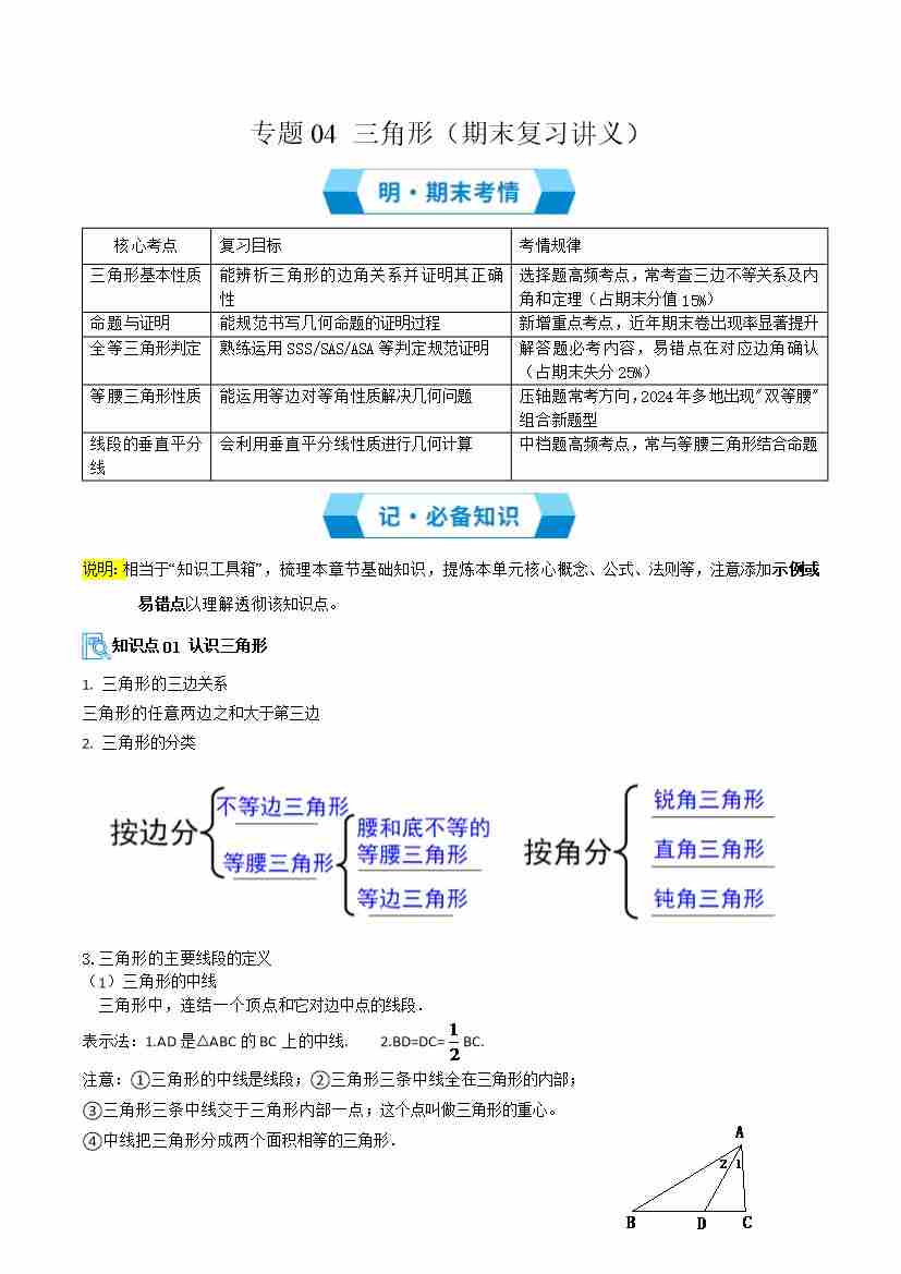 专题04 三角形(期末复习讲义)(原卷版)