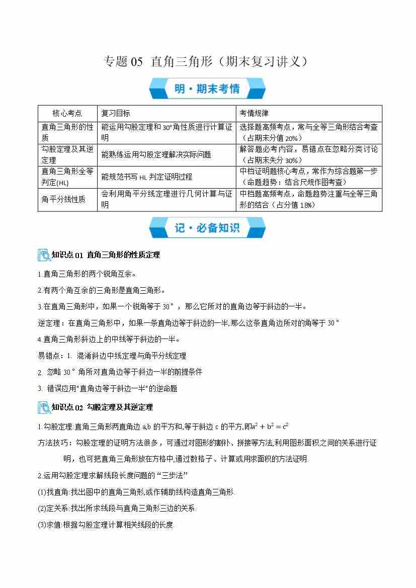 专题05 直角三角形(期末复习讲义)(原卷版)