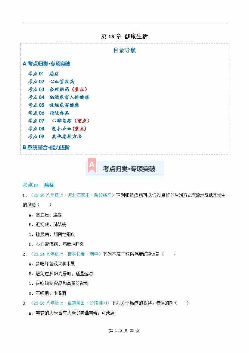 第18章 健康生活(专项训练)(原卷版)