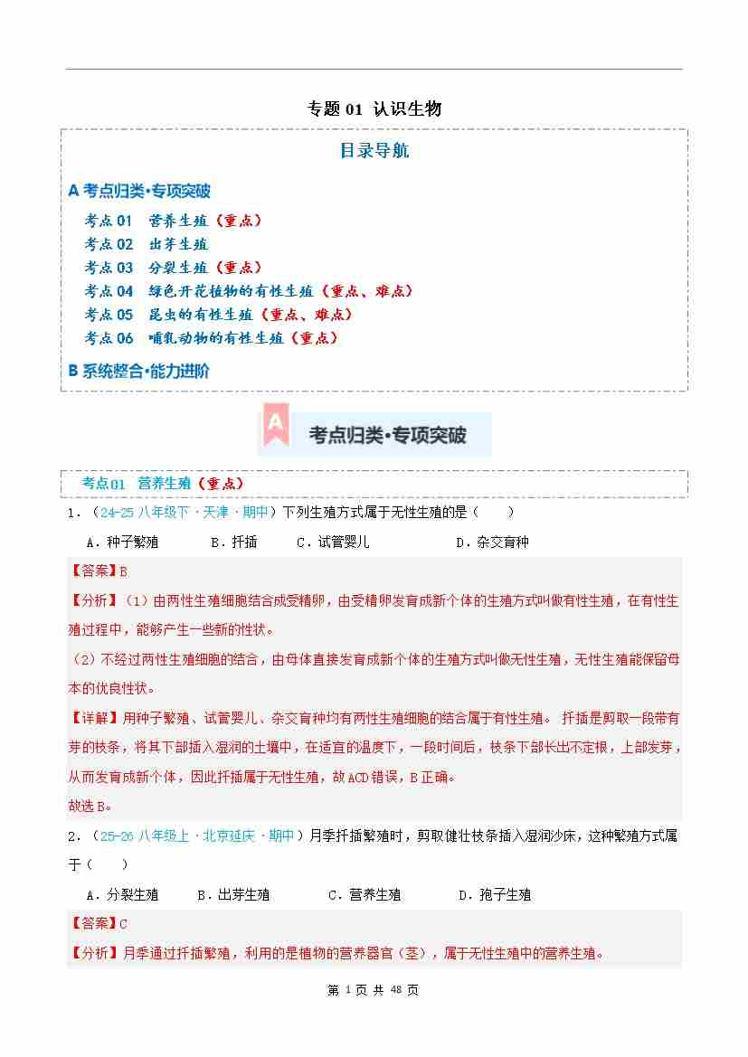 第18章 生物的生殖(专项训练)(解析版)