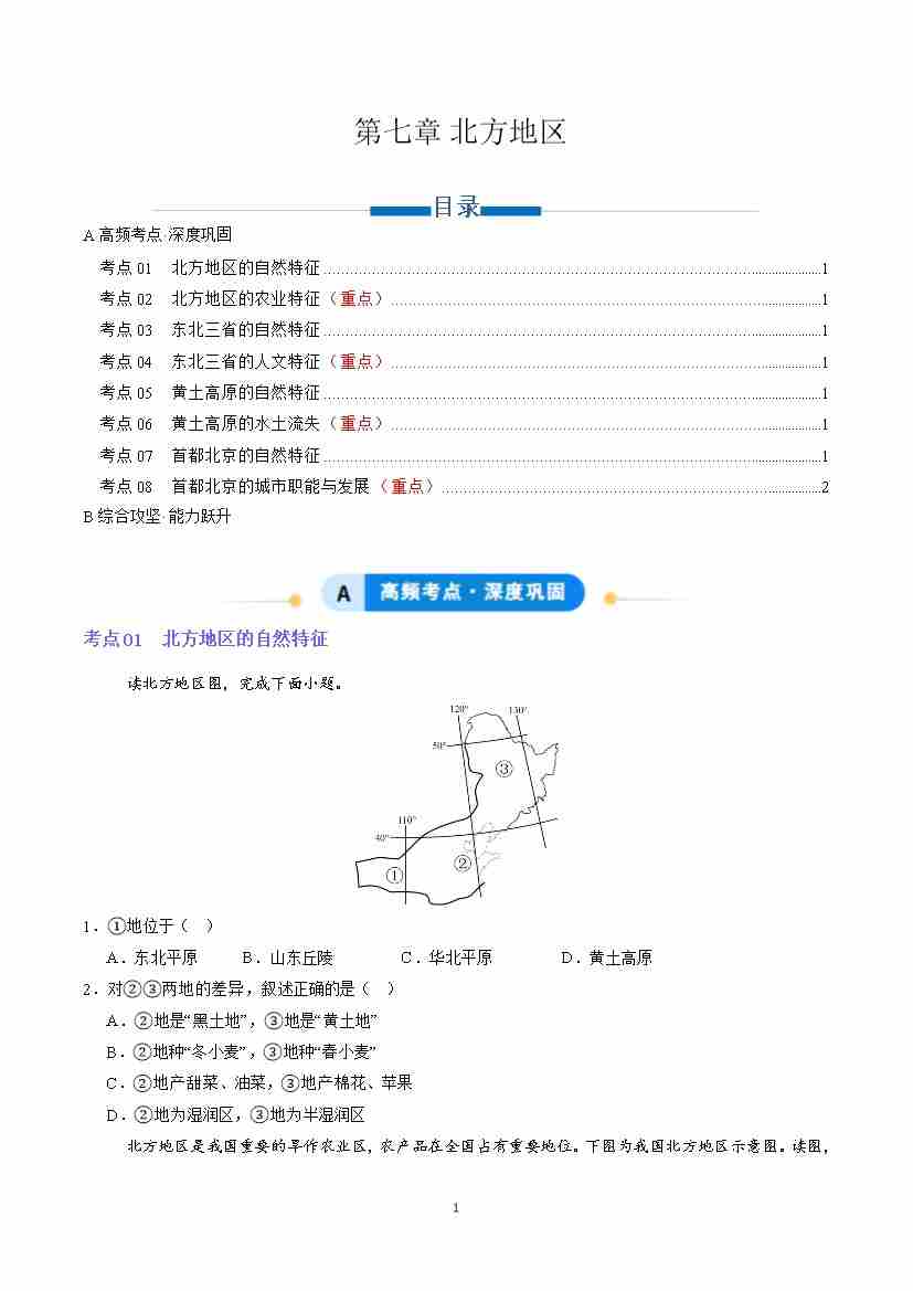 第七章 北方地区(专项训练)(原卷版)