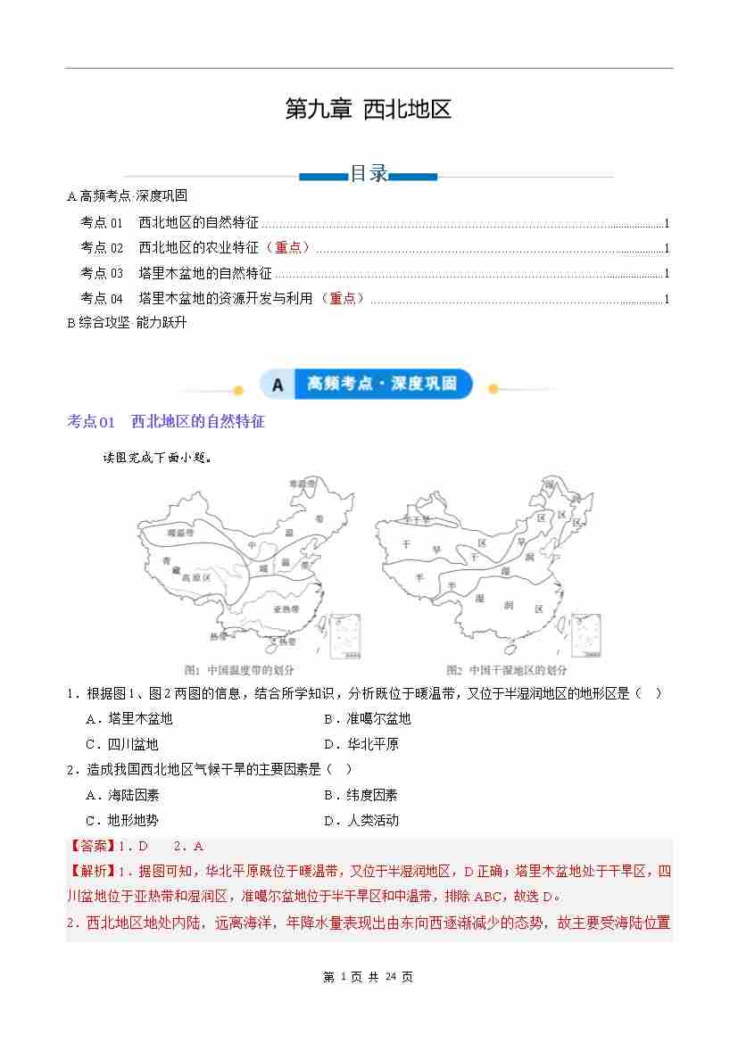 第九章 西北地区(专项训练)(解析版)