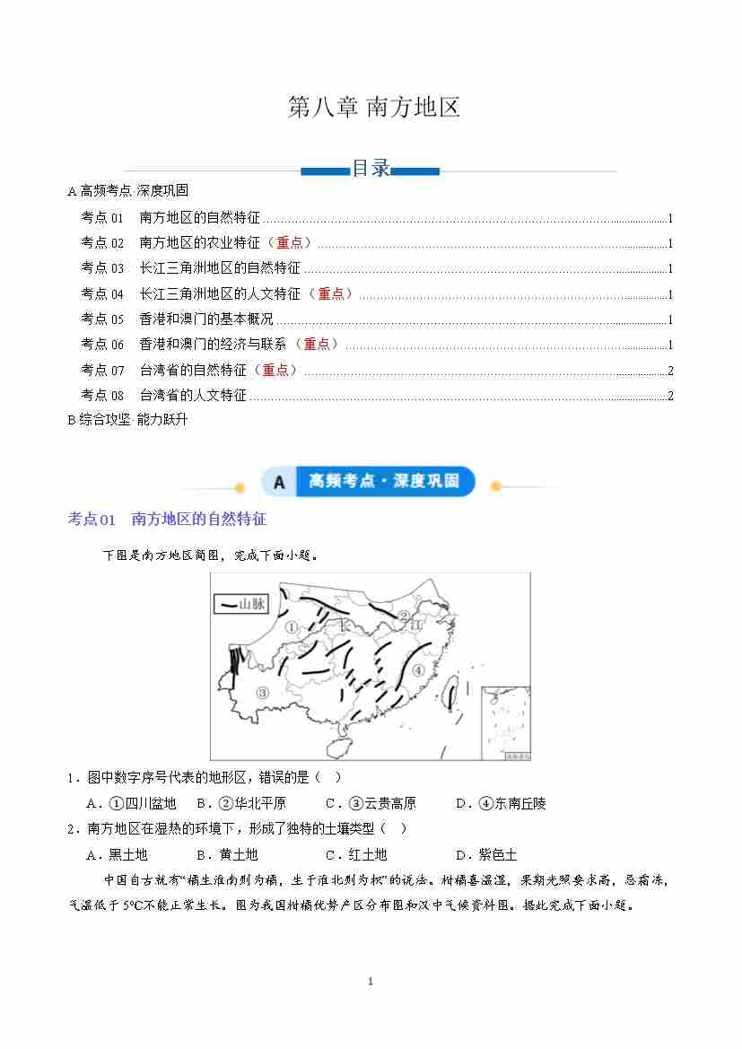 第八章 南方地区(专项训练)(原卷版)