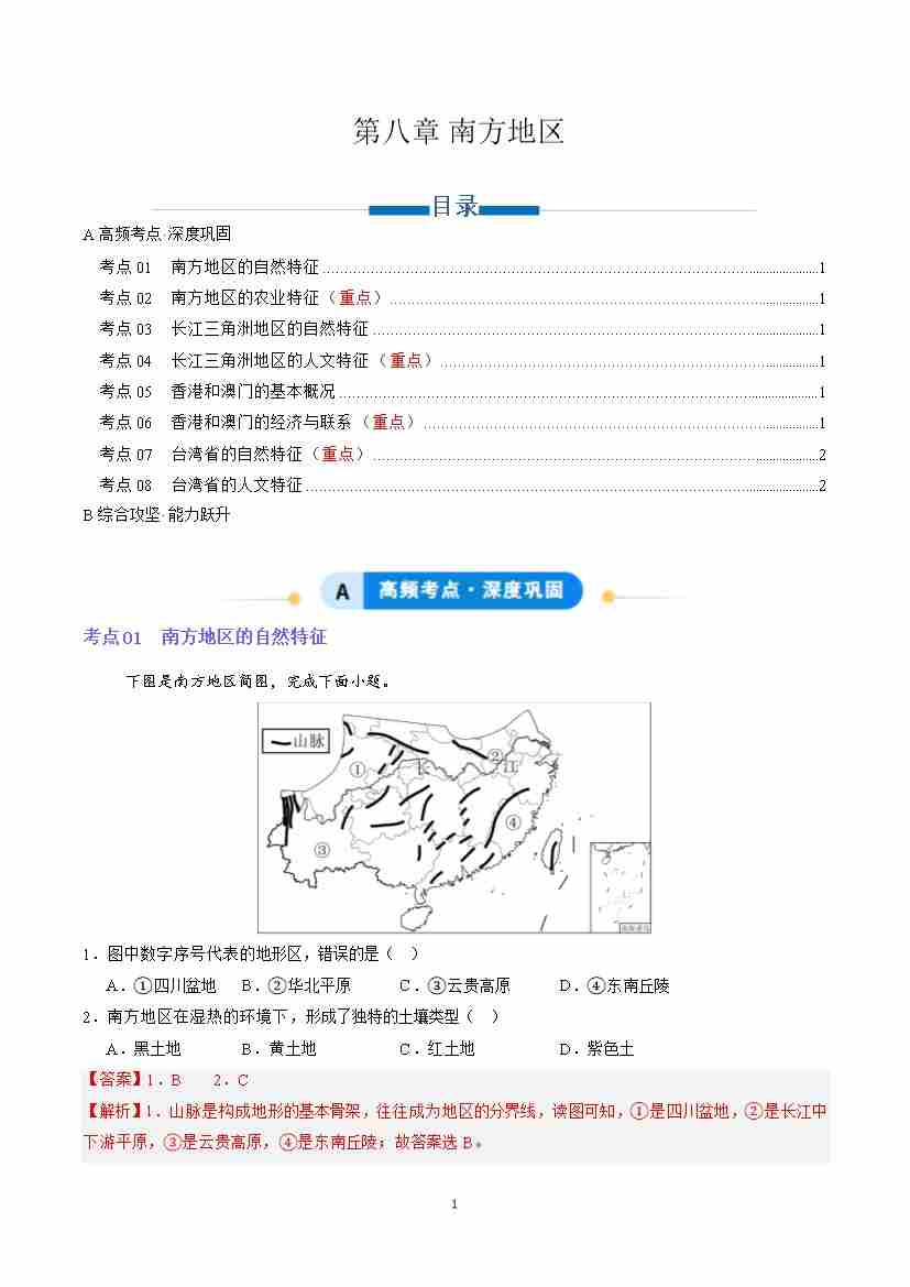 第八章 南方地区(专项训练)(解析版)