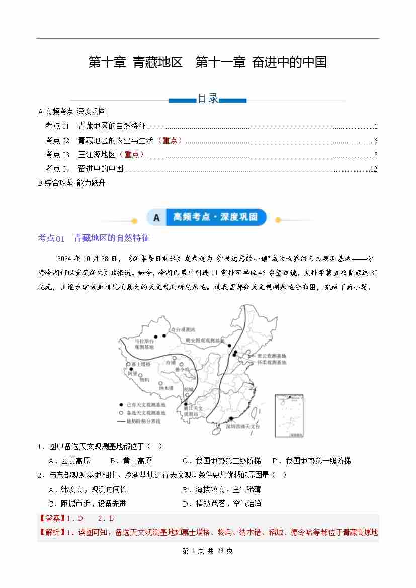 第十章 青藏地区、第十一章 奋进中的中国(专项训练)(解析版)