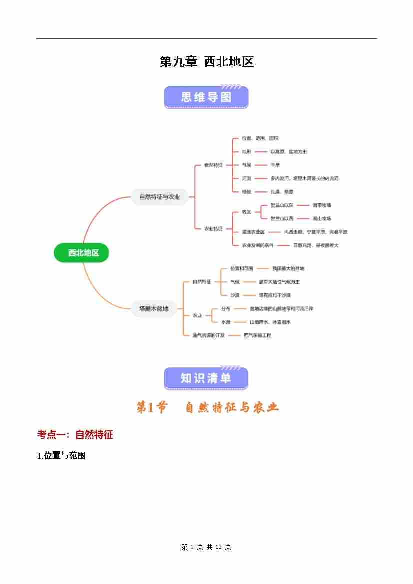 第九章 西北地区(知识清单)(背记版)