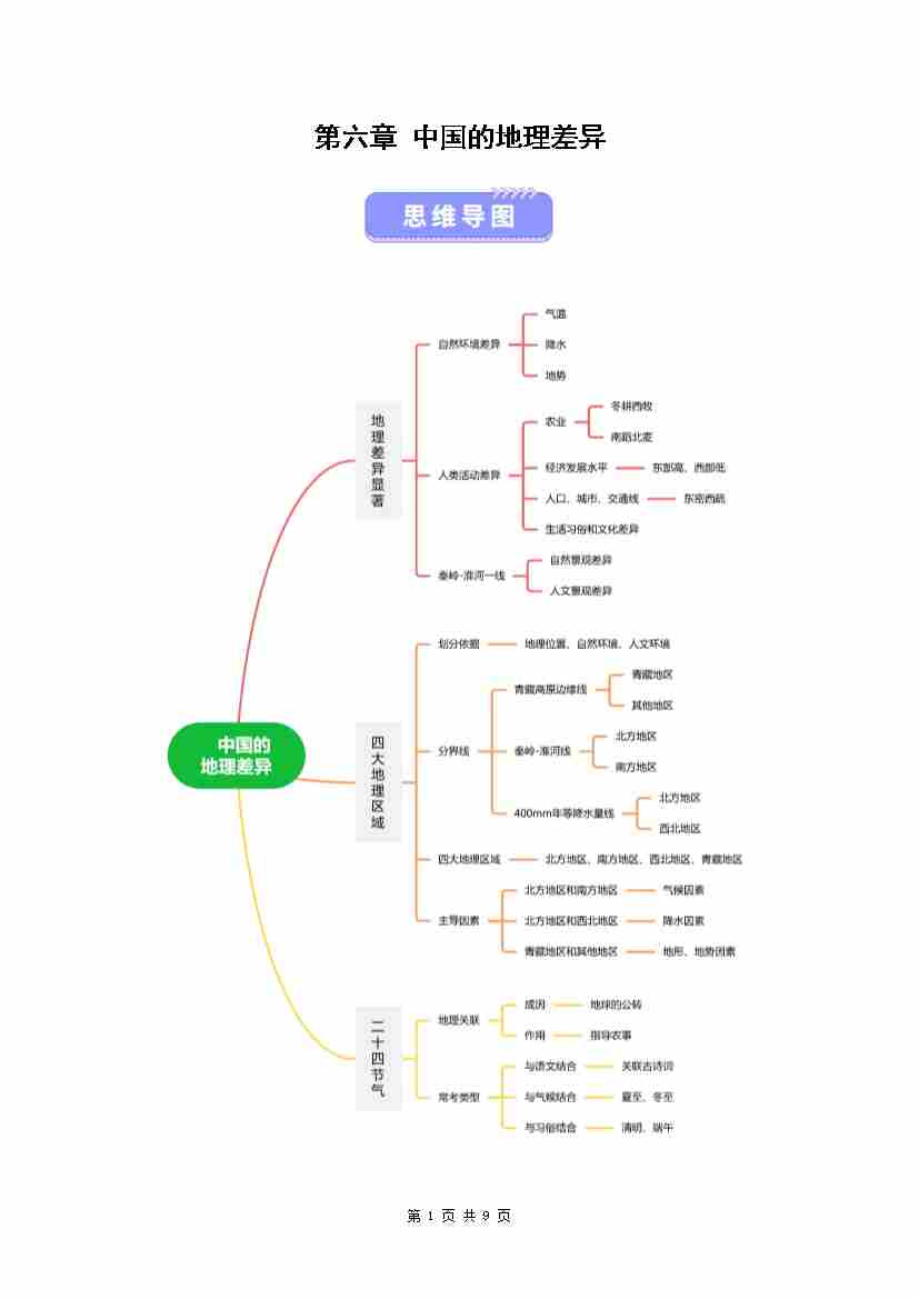 第六章 中国的地理差异(知识清单)(背记版)