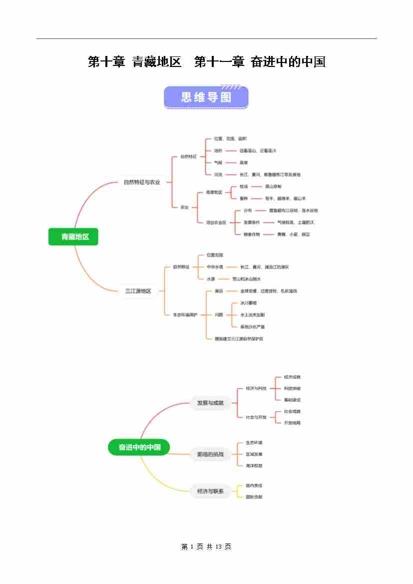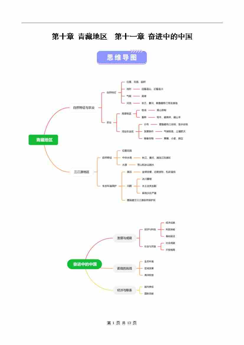 第十、十一章 青藏地区、奋进中的中国(知识清单)(背记版)