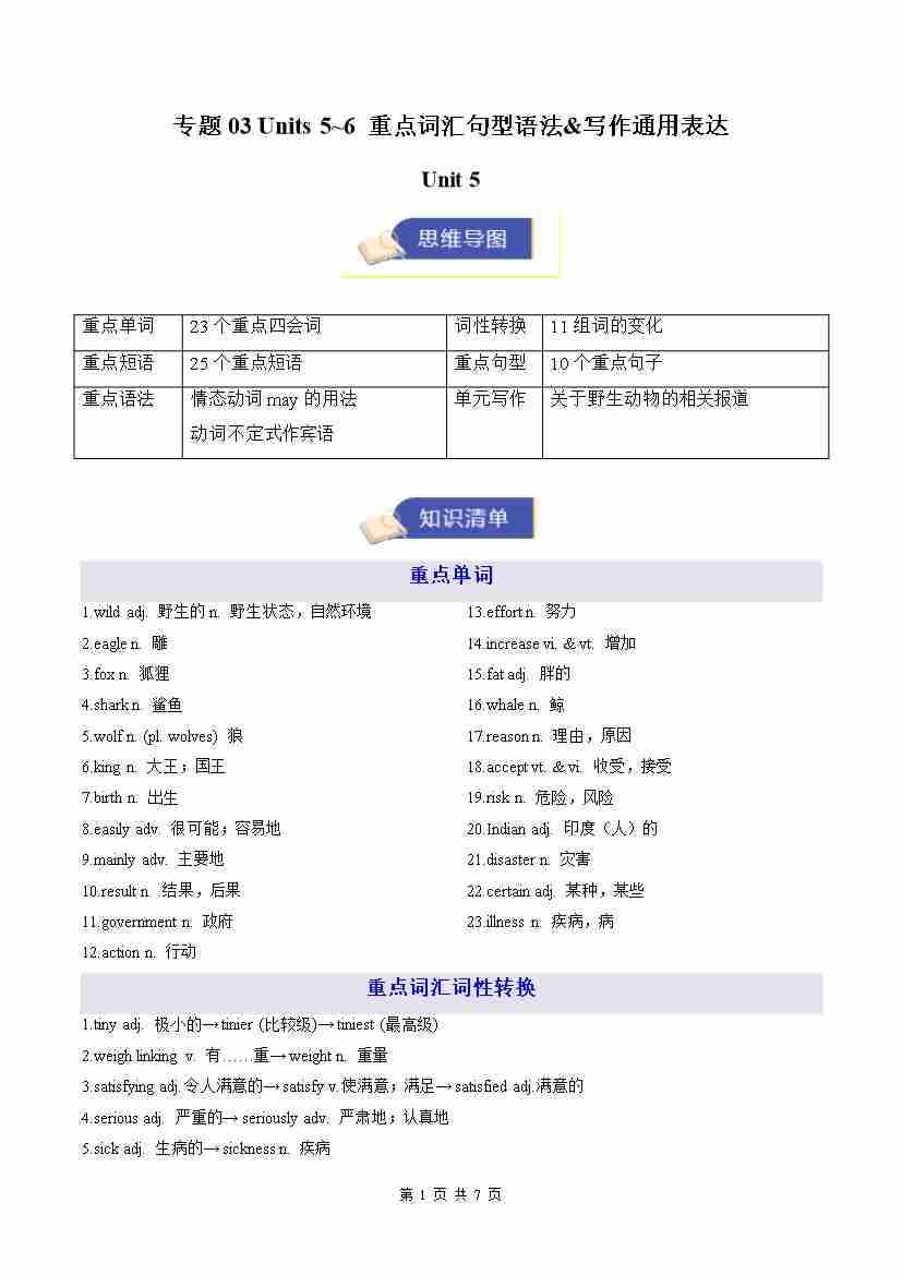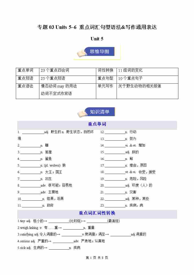 专题03 Units 5~6 重点词汇句型语法&写作通用表达(期末复习知识清单)(默写版)