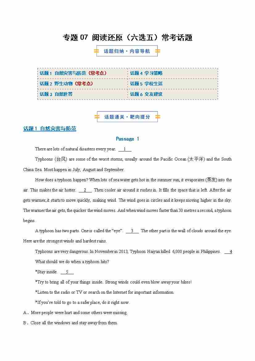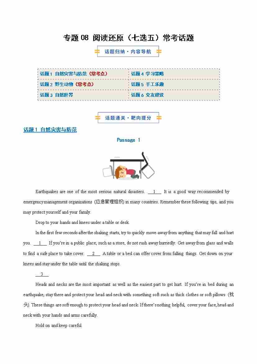考前押题02阅读还原(七选五)常考话题(学生版)